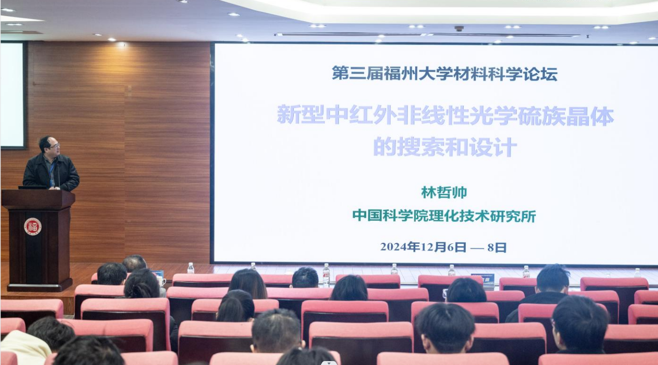 随后,中国科学院理化技术研究所的林哲帅研究员作了题为“新型中红外硫族非线性光学晶体的搜索和设计”的精彩报告。中红外非线性光学晶体是全固态中红外激光的核心器件,对遥感探测、国防安全等领域的发展作用巨大。报告集中系统阐述机器学习和第一性原理计算研究硫族化合物体系研究成果,有关综合性能平衡的新型中红外非线性光学晶体材料搜索和设计的研究进展,为后续研究实验新材料合成和性能表征提供高效的结构选型策略和构效关系理解。