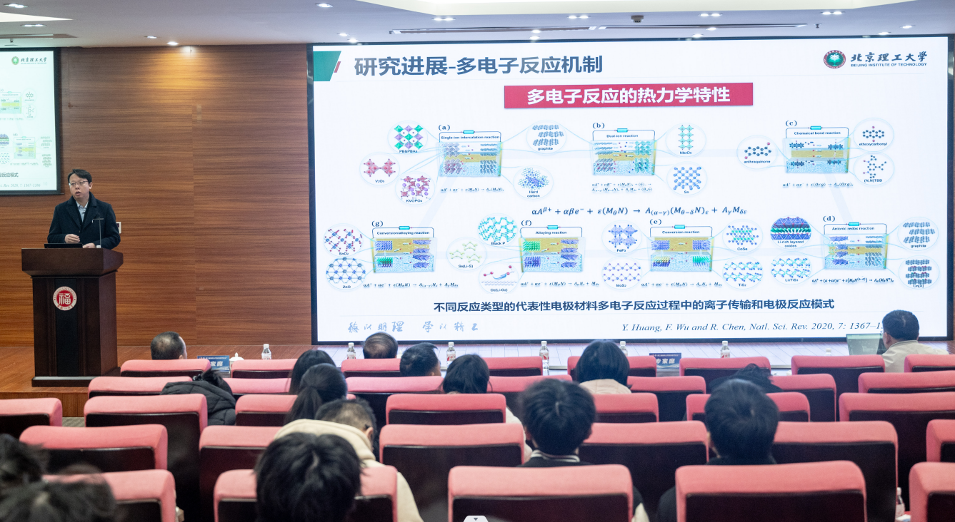 论坛伊始,北京理工大学的陈人杰教授作了题为“多电子高比能电池新体系及关键材料研究”的精彩报告。重点讲述了基于能斯特方程,阐述了电池能量密度与电化学反应中转移电子数紧密关联性,如何实现多电子反应来显著提升电池的能量密度。报告还讨论了如何依据多电子反应机制与电化学反应过程,设计出不同特性的高能量密度电极,为先进电池体系设计开创方向。