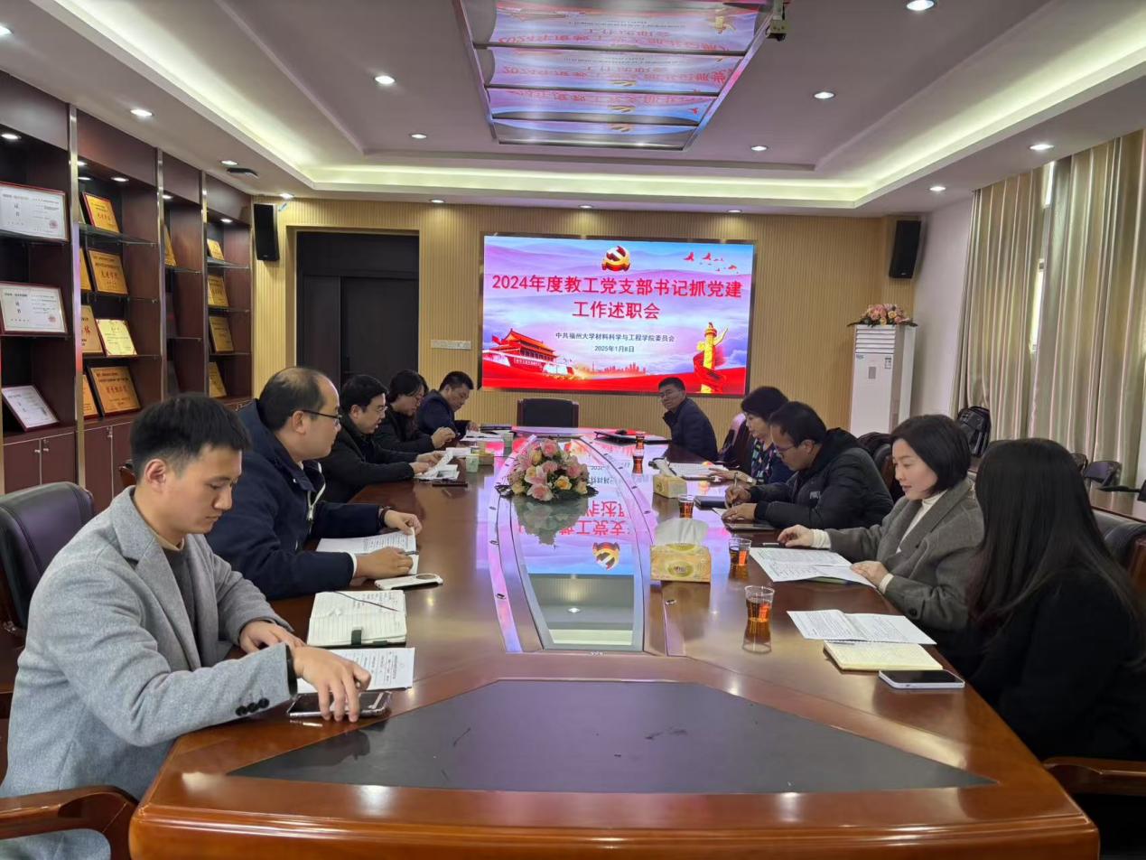 2025年1月8日下午,材料学院2024年度教工党支部书记抓党建工作述职会在嘉锡楼313会议室召开。学院全体党委委员及教工党支部书记参加了会议,部分教职工代表列席会议。会议由学院党委书记罗涛主持。