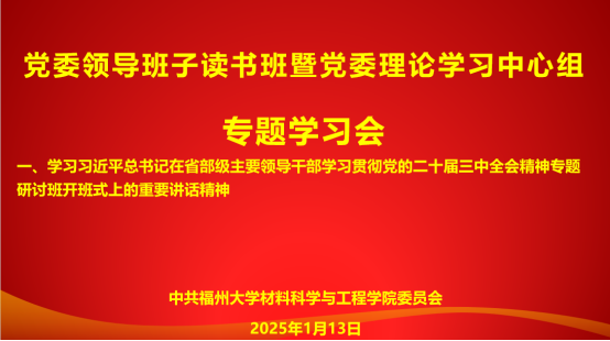 2025年1月13日,材料学院在嘉锡楼313会议室召开第2次党委理论学习中心组专题学习会。会议由学院党委书记罗涛主持,学院党委委员、部分教师代表参会,林梅金副院长列席会议。