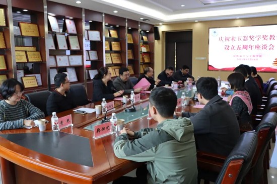 随后,沈庆斌副书记详细汇报了宋玉器奖学奖教金设立五年来的运行情况与实施成效。五年来,该奖项始终坚持规范评审、精准激励,不仅为优秀师生提供了有力的物质支持,也激发了师生潜心向学、锐意进取的精神动力,已成为推动材料学院人才培养和师资队伍建设的重要支撑力量。