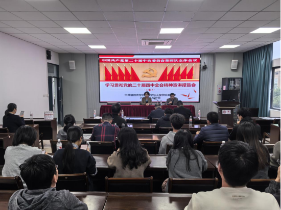 为深入学习贯彻党的二十届四中全会精神,12月9日下午,材料学院召开学习贯彻党的二十届四中全会精神宣讲报告会。本次宣讲会邀请成人网站 教务处处长、成人网站 学习贯彻党的二十届四中全会精神专家宣讲团成员、学院环境功能材料研究所所长于岩教授,作题为《深悟党的二十届四中全会精神实质 扛起“十五五”奋进新使命》的宣讲报告。报告会由学院党委书记罗涛主持,全院教职工以及学生代表参会。
