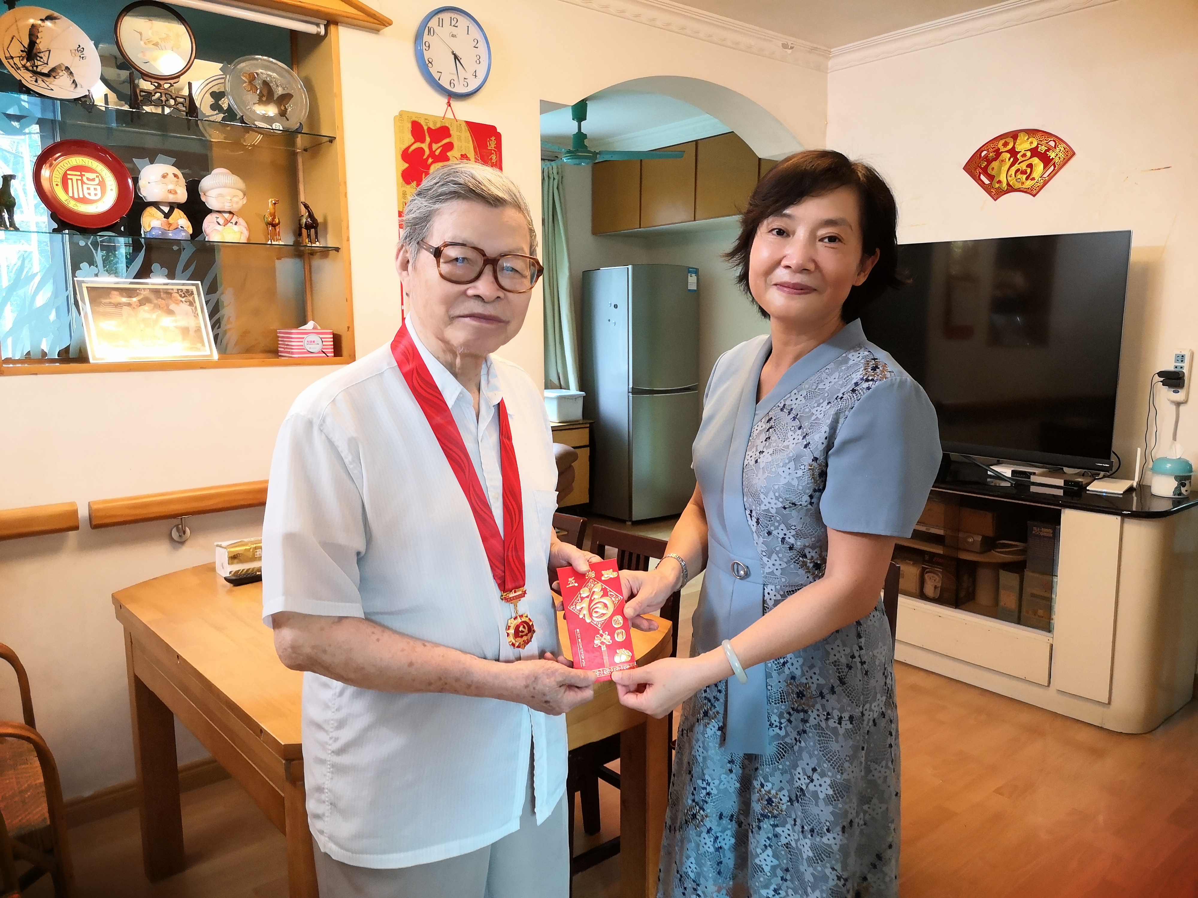 6月28日下午,材料学院党委书记倪朝霞带领党委组织员前往福大怡园、庭芳苑,为老党员颁发“光荣在党50年”纪念章。