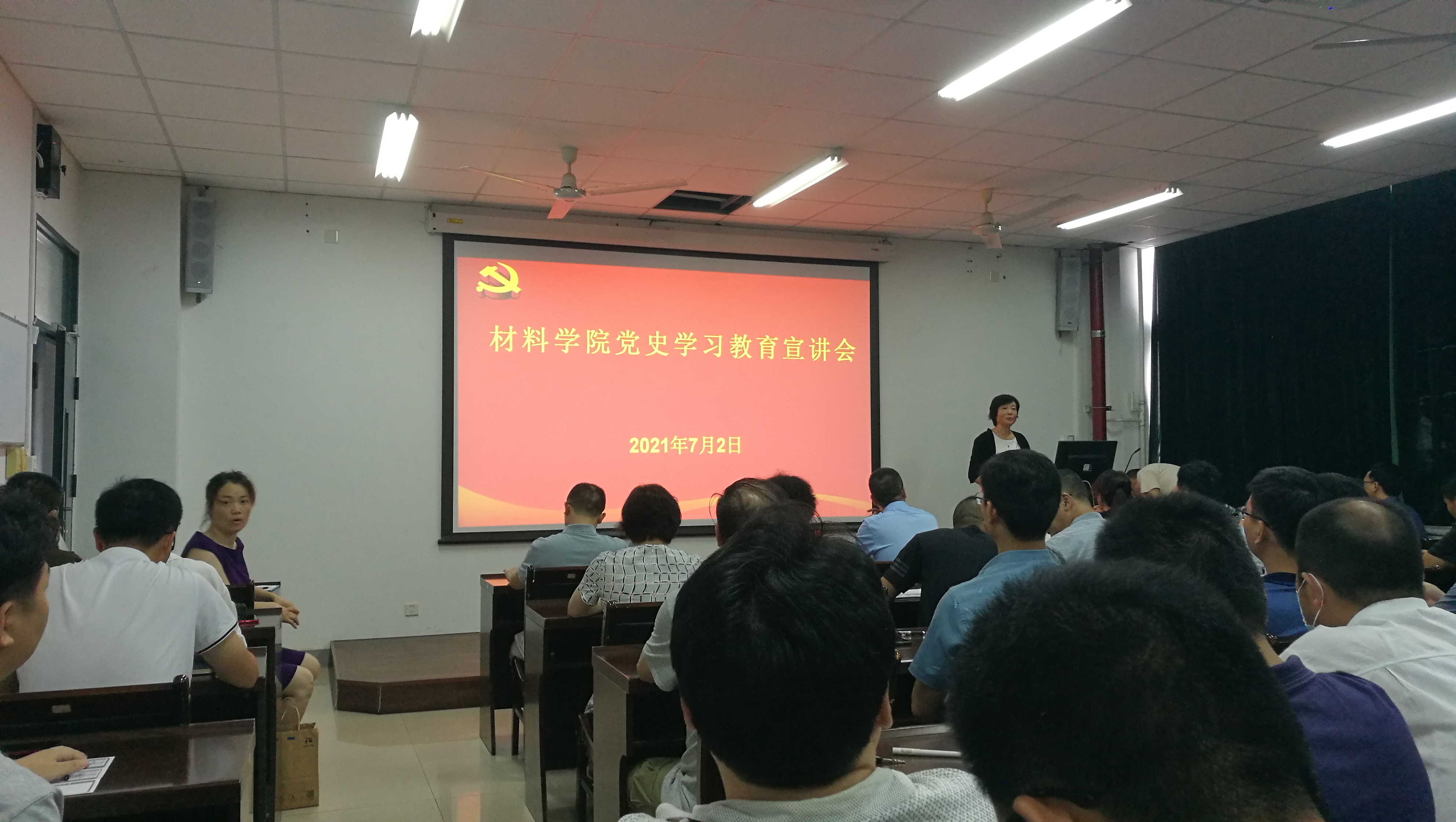 为全面贯彻落实习近平新时代中国特色社会主义思想,深入开展党史学习教育,7月2日下午,材料学院在材料科学楼404会议室举行党史学习教育宣讲报告会。本次报告会邀请了党史学习教育成人网站 宣讲团成员郭昌文老师担任主讲。报告会由学院党委书记倪朝霞主持,学院教职工参加了本次报告会。