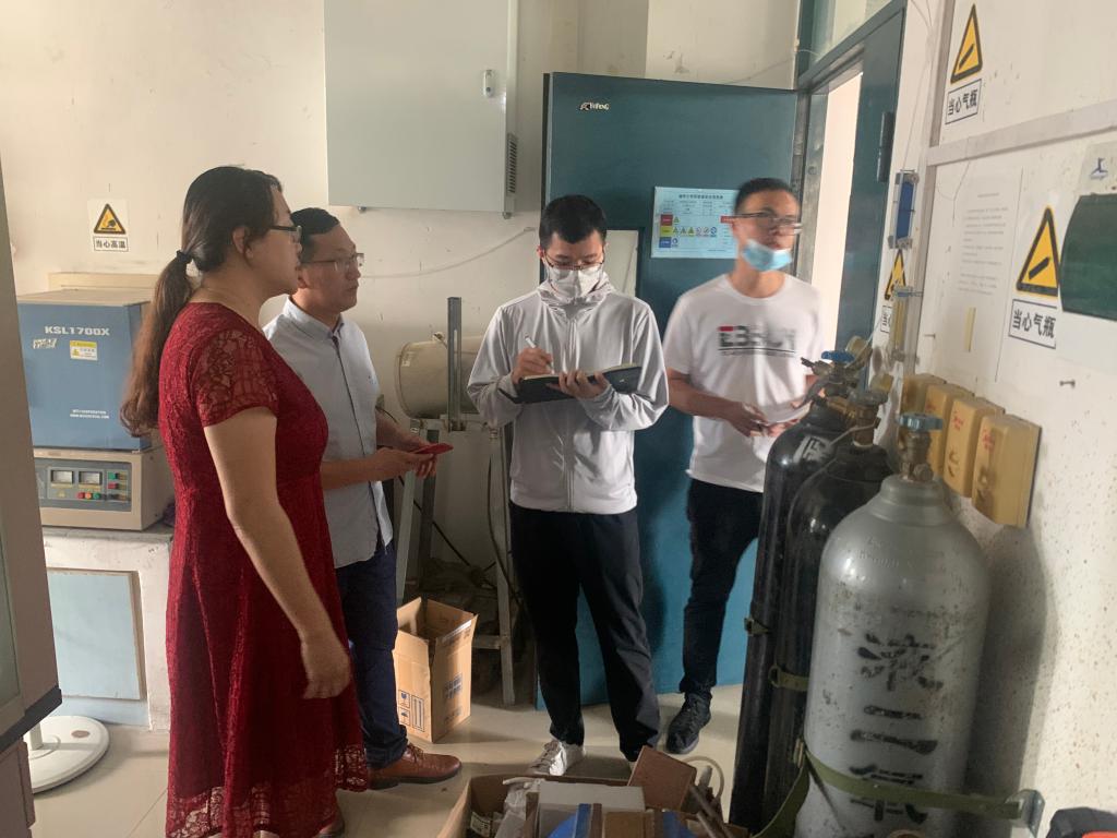 8月28日上午,材料学院倪朝霞书记、袁珮执行院长、林枞副院长带队深入实验室开展期初安全工作检查。实验中心负责人及相关人员陪同检查。