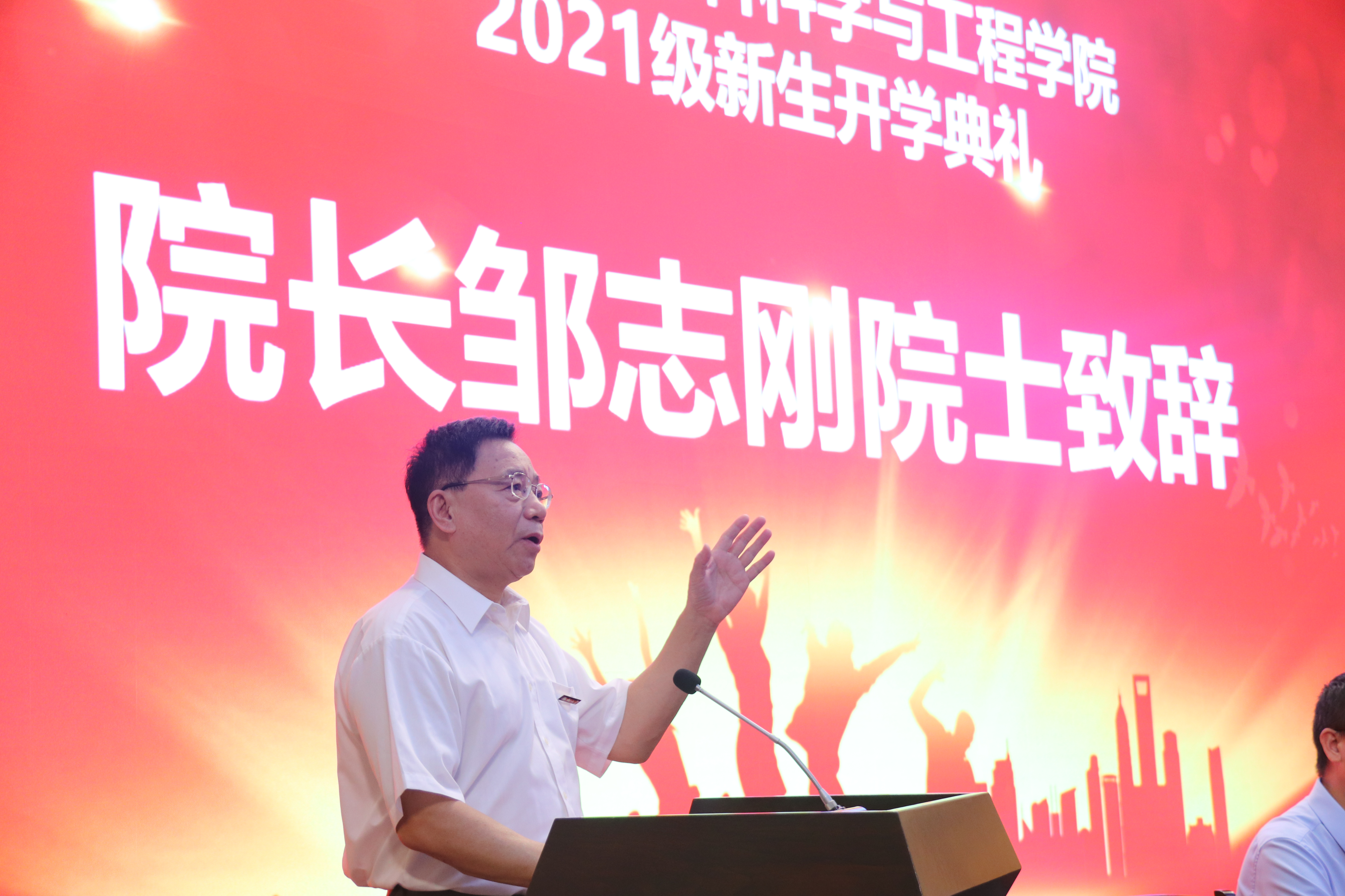 最后,由院长邹志刚院士致辞。邹院士表达了对新同学的欢迎,希望同学们保持强烈的求知欲和旺盛的学习热情,要兼具“人文情怀”和“科学素养”,兼怀“历史眼光”和“国际视野”,要有“独立之思想,自由之精神”的学术追求,要有“衣带渐宽终不悔”的学术境界,自觉把个人发展融入国家发展伟业和民族伟大复兴之中,做新时代的奋斗者,做民族复兴的实干家。
