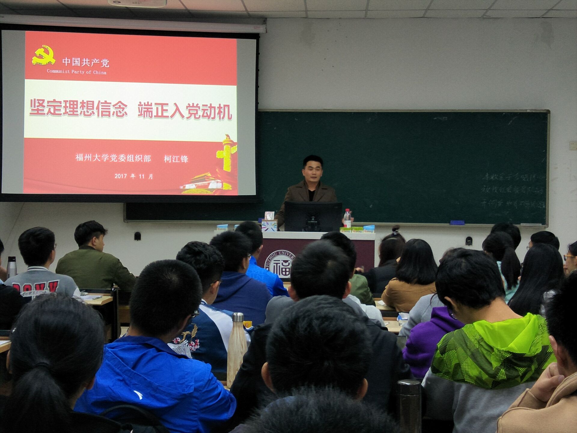 11月27日,成人网站 于西二-205开展第二期入党积极分子党课教育,本次课程主题为“坚定理想信念,端正入党动机”,由校党委组织部科长柯江锋老师主讲。全院积极分子悉数到场。