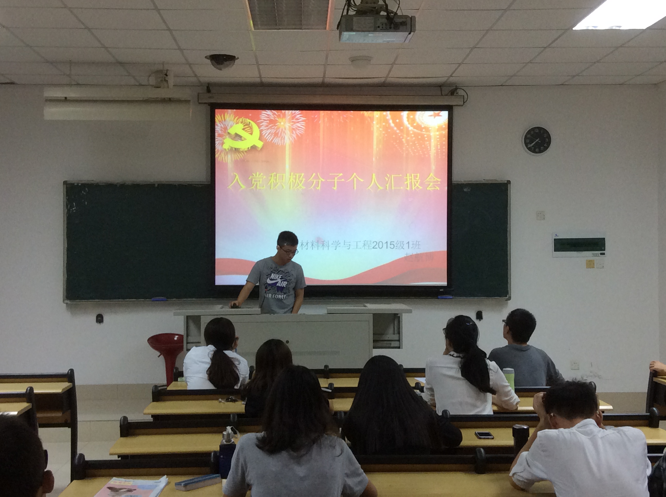 考察会开始,积极分子们依次上台汇报。他们就个人成绩,帮扶对象,志愿活动,个人承诺等四个方面做了精彩的讲述。有科研经历的同学介绍了自己将要发表的学术论文和专利,有参加学生工作的同学讲述了在工作中服务同学的收获,有参加课外实践的同学讲述了在实践过程中的收获。