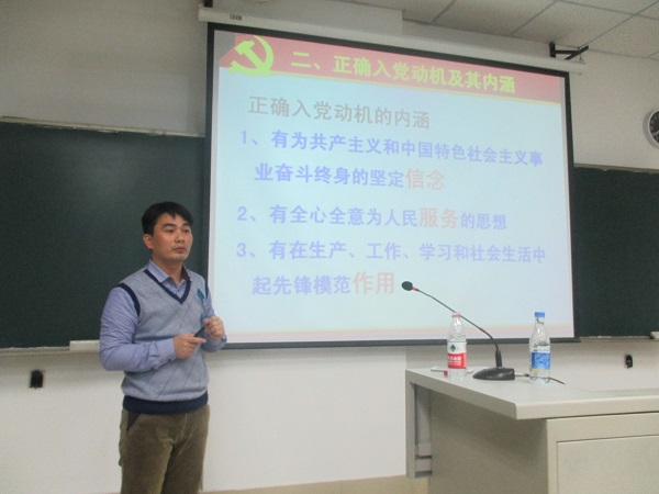 12月4日晚,成人网站 第14期党校开班仪式暨第一讲于教学楼西二208室顺利开展。本次课程的主题是:如何端正入党动机。校党委组织部的柯江峰老师担任本次课堂主讲人,辅导员王文栋老师、第14期全体入党积极分子参加了此次党课。