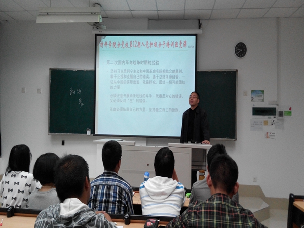 王书记生动讲述了党的成立过程和党纲、党章的提出与修改。接着又对从一大到十八大的中国共产党的发展史进行了深刻的介绍,让同学们了解到党从成立到发展再到壮大的艰苦历程。在那样一个动荡的年代,无数的英雄人民为党的未来奋斗牺牲,无数的知识分子在错误中吸取教训,这些成就了今日日益繁荣的中国。随后,王老师阐述了党员应尽的义务,他从理论学习、社会实践、价值取向、纪律观念等八方面详细介绍了党员所要履行的义务,坚持全心全意为人民服务的宗旨。最后,王老师提出了成为一名合格的学生党员的四个基本要求,要求学生党员成为同学们中的领头羊、信息员、服务员和组织者,努力成为一名优秀的共产党员。他说:“信仰不是说出来的,而是做出来的。”他鼓励我们在生活中严格要求自己,在实践中不断磨练自己、提高自己,争取成为一名优秀的共产党员。