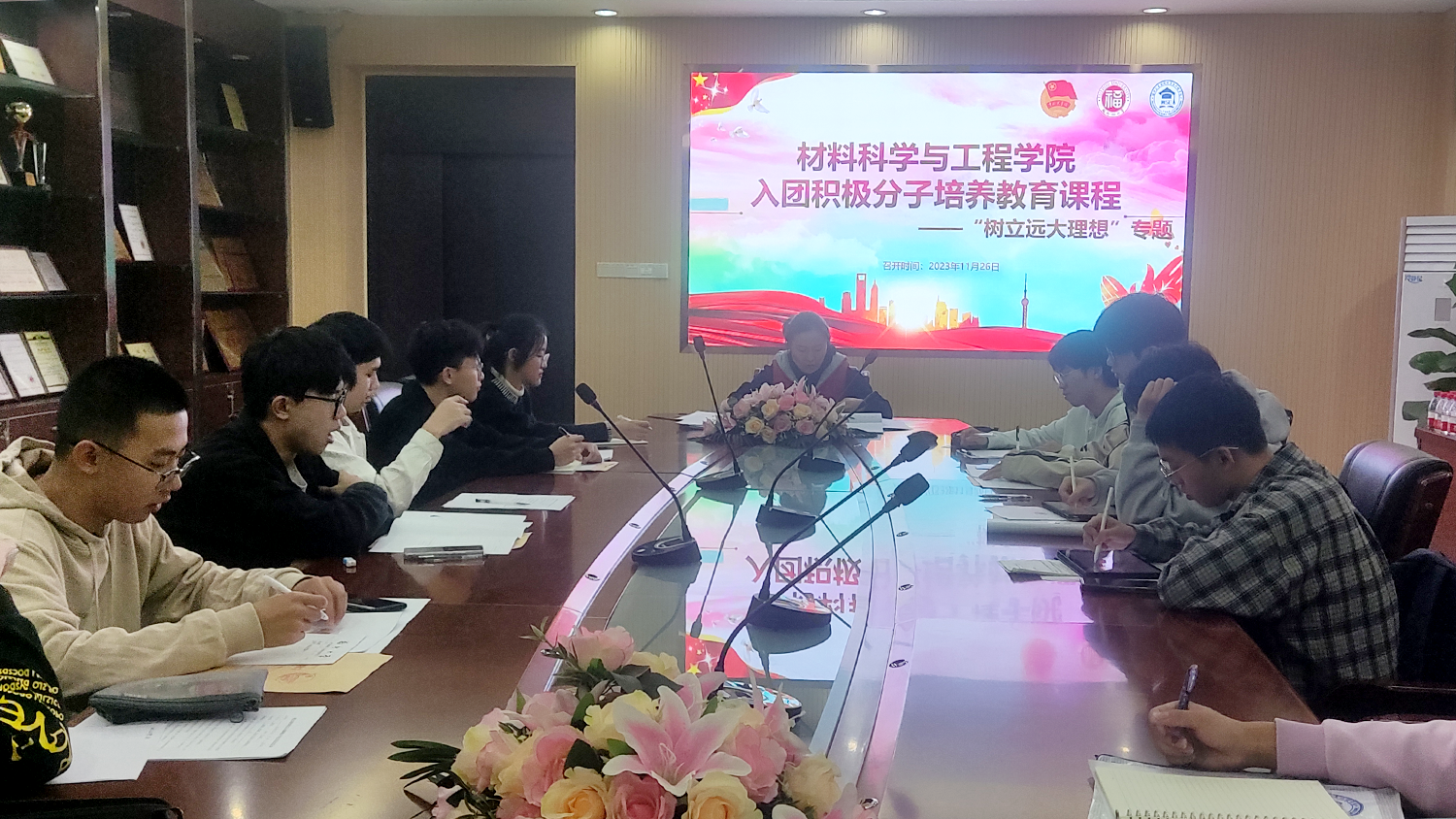 11月26日,材料学院团支书、入团积极分子培养教育专题课程分在院办313顺利举行。此次活动由院团委书记牛秋月老师主讲,各班团支书、全体入团积极分子参加。
