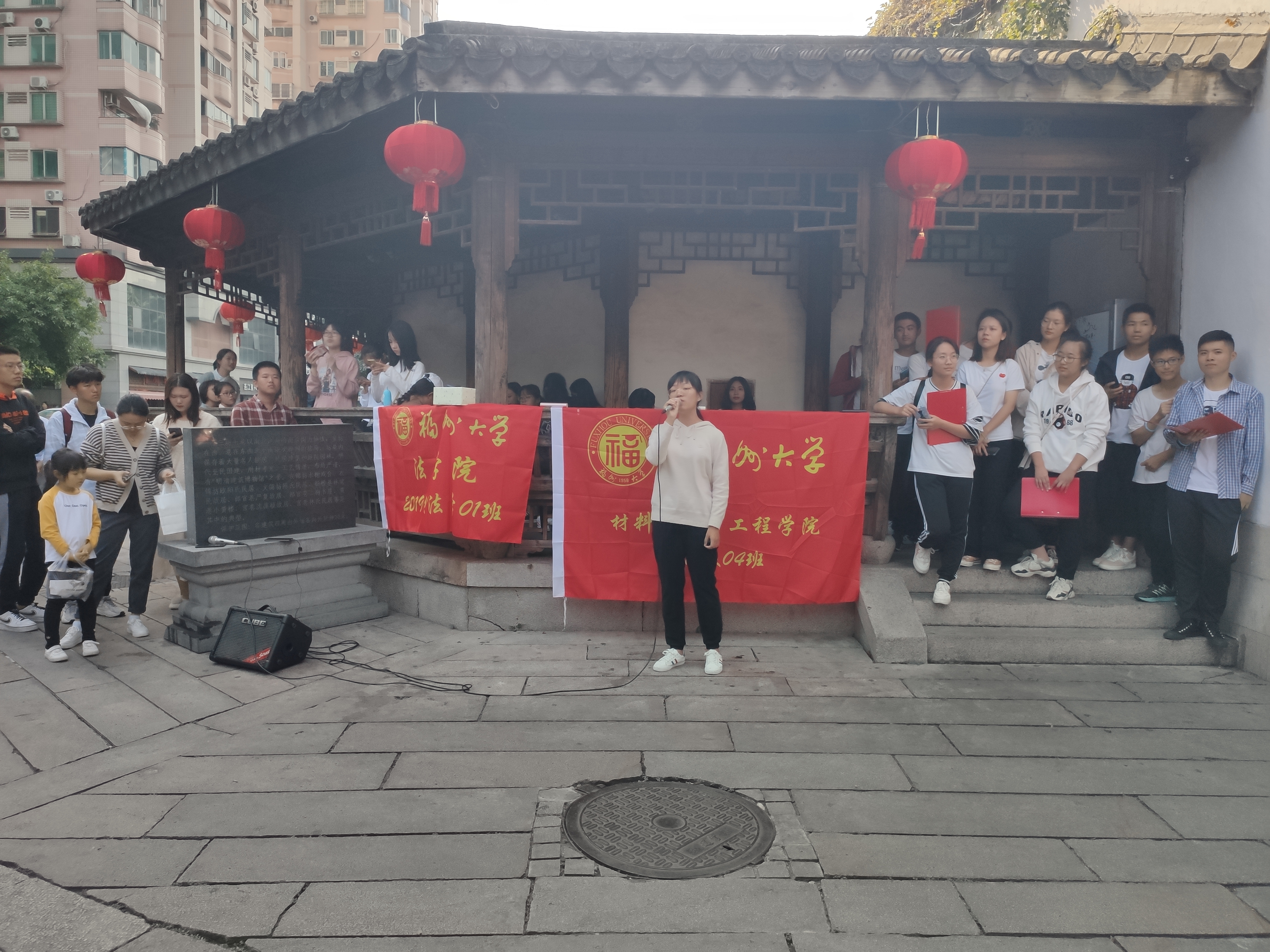为传扬爱国主义教育,表达爱国主义热情,秉持"不忘初心,牢记使命"的宗旨,11月3日,成人网站 材料学院19级4班团支部携手成人网站 法学院19级1班团支部在三坊七巷顺利开展“唱响红色歌曲,共贺七十华诞”的文艺路演。