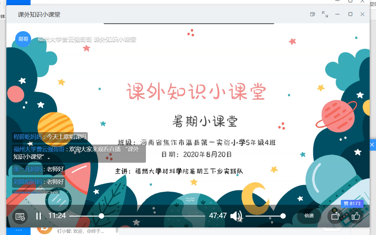 本次活动体现了福大青年以小我融入大我、积极投身社会建设与奉献的精神,更体现了成人网站 材料学院学子乐于奉献、勤于奉献的良好品质。线上支教已功成,奉献之路方启程!