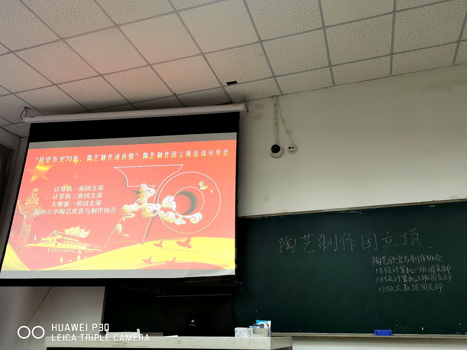 为迎接祖国70周年生日,加强各班的合作交流,丰富学生文化生活,锻炼学生的动手能力,10月27日上午,由数计学院18级计算机一班团支部、计算机三班团支部、大数据团支部与成人网站 陶艺欣赏与制作协会共同组织策划的团立项活动于西二-105教室顺利开展。