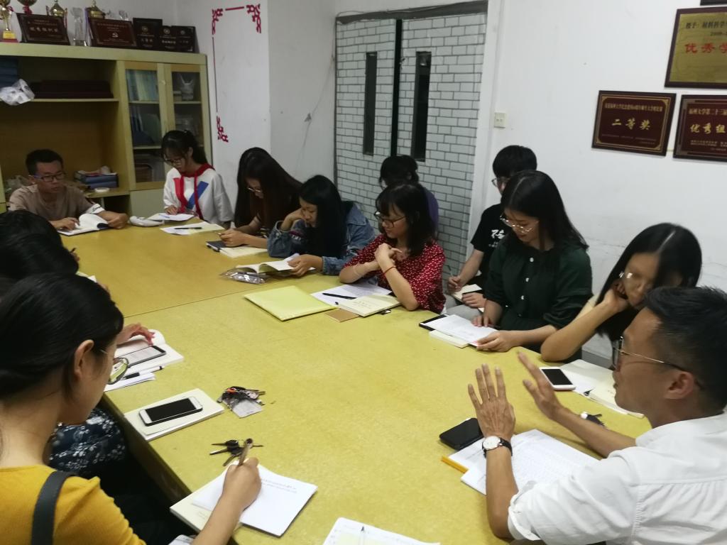 王文栋老师会前组织党支部成员对《习近平关于“不忘初心、牢记使命”论述新编》的专项学习,号召大家积极学习党的思想理论,坚持对党理论的深入了解和思考,做一个思想与行动相统一的合格共产党员。