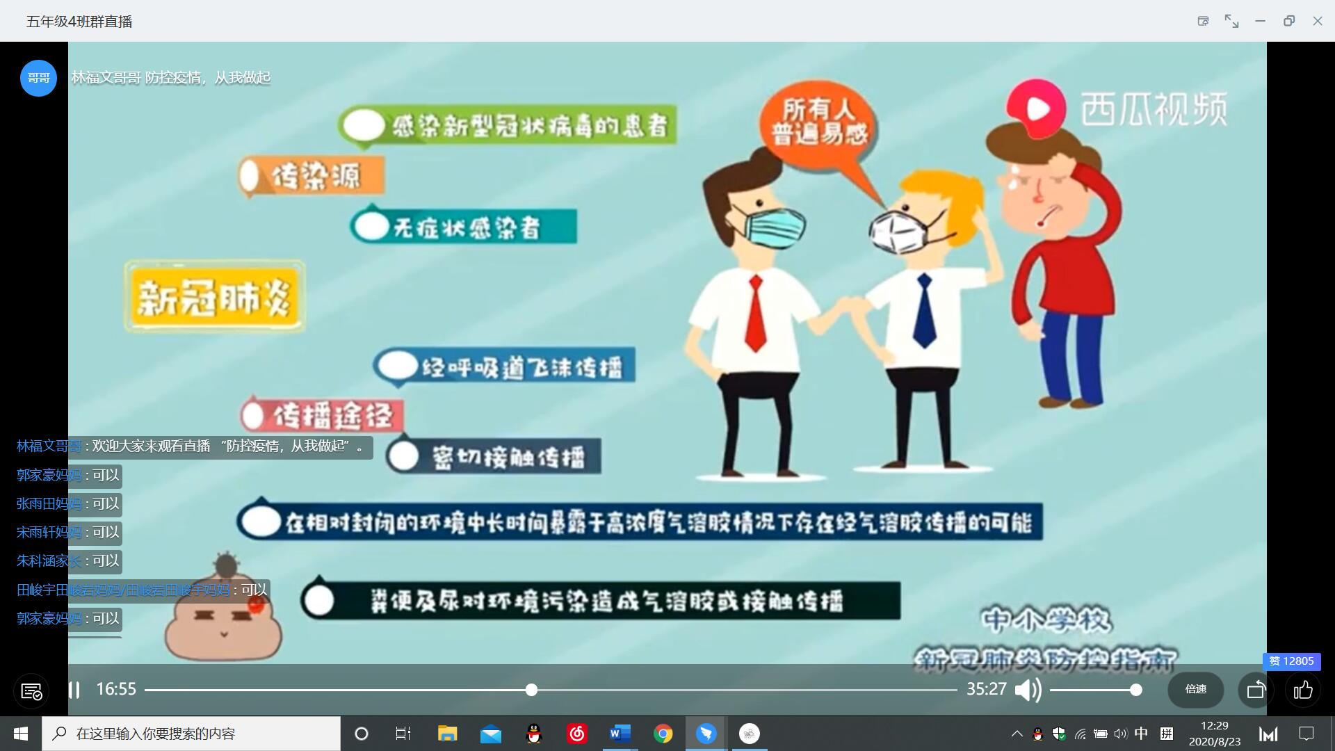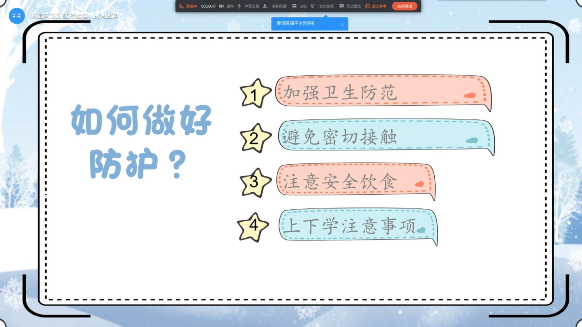 第二次课堂依旧依托线上云课堂的方式,和温县第一实验小学5年级4班小朋友以及家长们进行了更深层次的交流。小朋友以及家长表示收获满满,对疫情防控形势以及防控方式有了更深的理解与认识,并期待第三次的云互动。