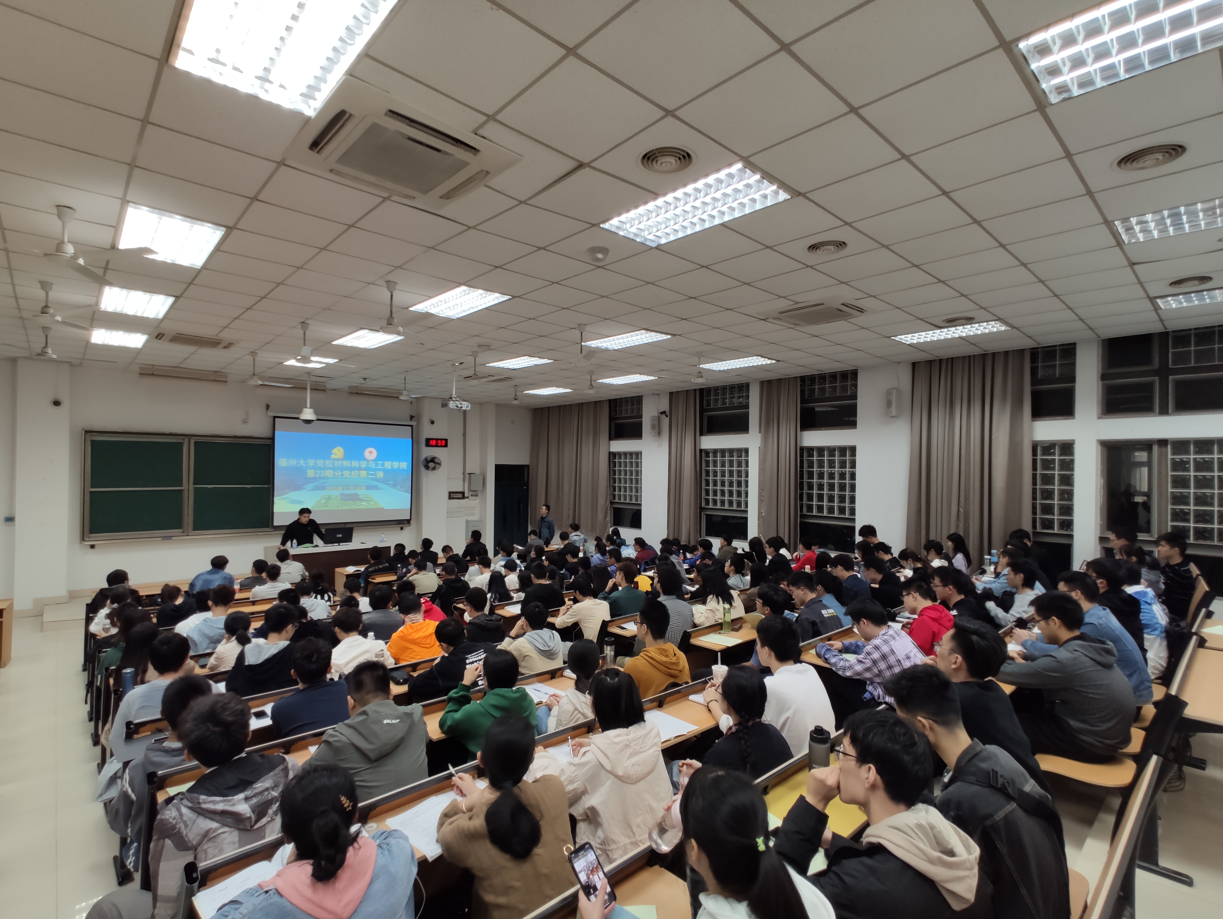 校学生工作部(处)研究生教育管理科科长陈永福老师主讲,第23期全体入党积极分子到场参加。