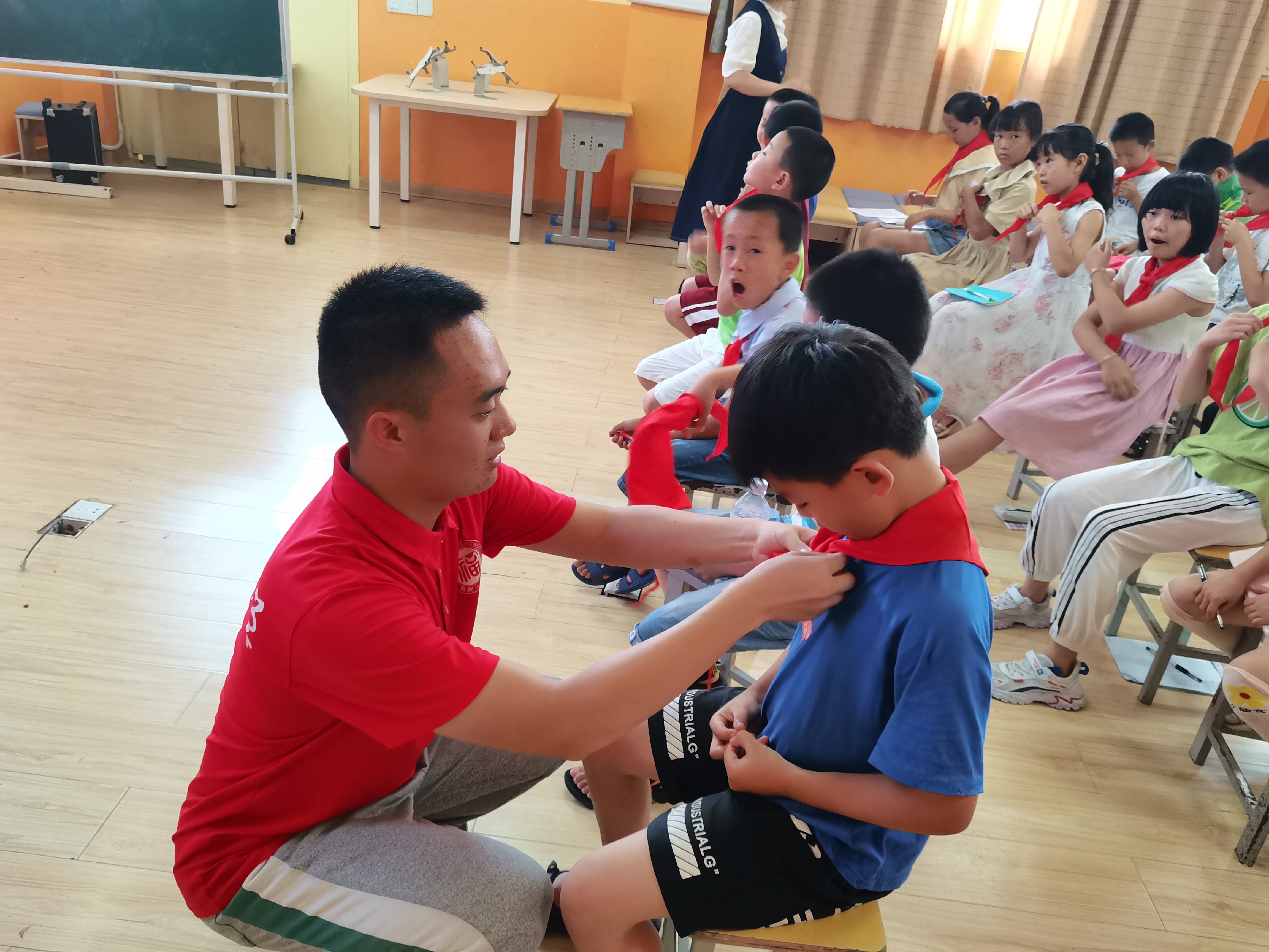 接着,实践队来到了曹坊中共三黄第一支部旧址。“1930 年盛夏,食不果腹的贫苦工农们在宁化地下党的组织下,酝酿一场改变自身命运的革命。在曹坊镇中心学校,站在操场旁的一棵鸡爪梨树下,这棵树见证了那场革命,也打响了宁化革命的第一枪。”讲解员向实践队队员讲述这里的红色历史。实践队队员还走进曹坊中心小学,给30多位留守儿童送上红领巾,与他们一起观看《风展红旗如画》情景剧,讲述红色故事和珍惜粮食的小课堂。