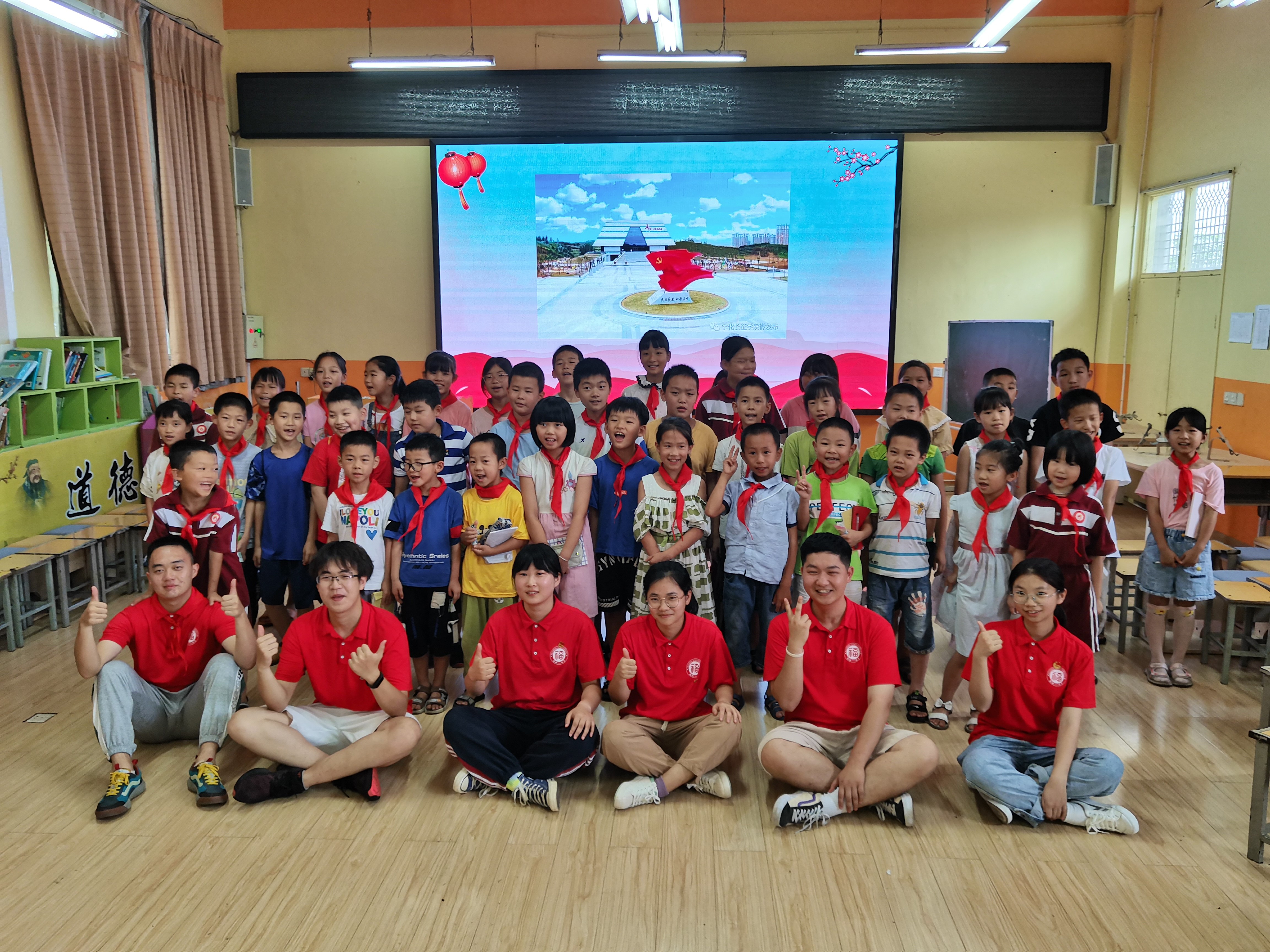 实践队与曹坊中心小学学生观看《风展红旗如画》情景剧