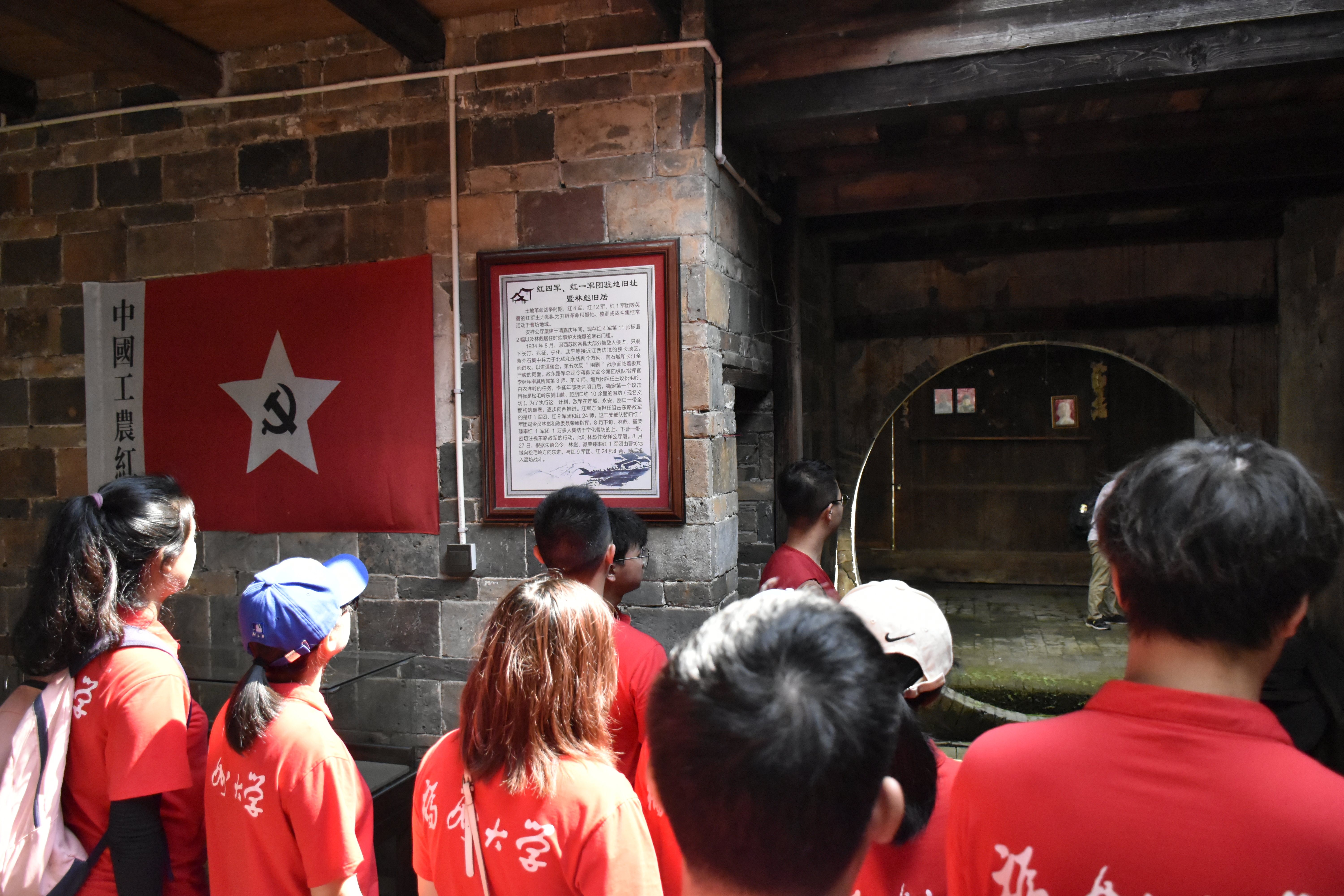 走进宁化县曹坊镇中央红军村——下曹村,迎面而来的古建筑群里,仍完好地保存着大量宣传革命思想和抗日主张的红军标语,巍峨的大门楼,精雕细镂的门窗,参差有序的马头墙仿佛向来者无声诉说着那段激情燃烧的烽火岁月。下曹村红色底蕴深厚,曾是红军扩红及筹款筹粮的重要根据地,许多革命先辈以及中央红军、地方红军多次到下曹村开展革命活动,留下了弥足珍贵的红色遗产,至今仍保留着敬湖公祠、安俊公厅厦等多处红色遗址遗迹。在研学过程中,实践队员同前来学习、调研红色革命精神的北大“力行计划”社会实践队、长征学院学员两行人员深入交流,大家都深感革命胜利果实的来之不易。实践队还采访了曹坊团委书记沈全坤,沈书记表示:“我们宁化牺牲了这么多的战士们,现如今,中国的强大与他们不怕牺牲、勇于奉献的大无畏精神有密不可分的关系,身处新时代的我们更应‘不忘初心,牢记使命’,发扬‘红军不怕远征难’的精神。”一名名革命先烈英勇奋战的照片、一段段惊心动魄的故事和为革命抛头颅、洒热血的奉献精神深深感动了实践队员。