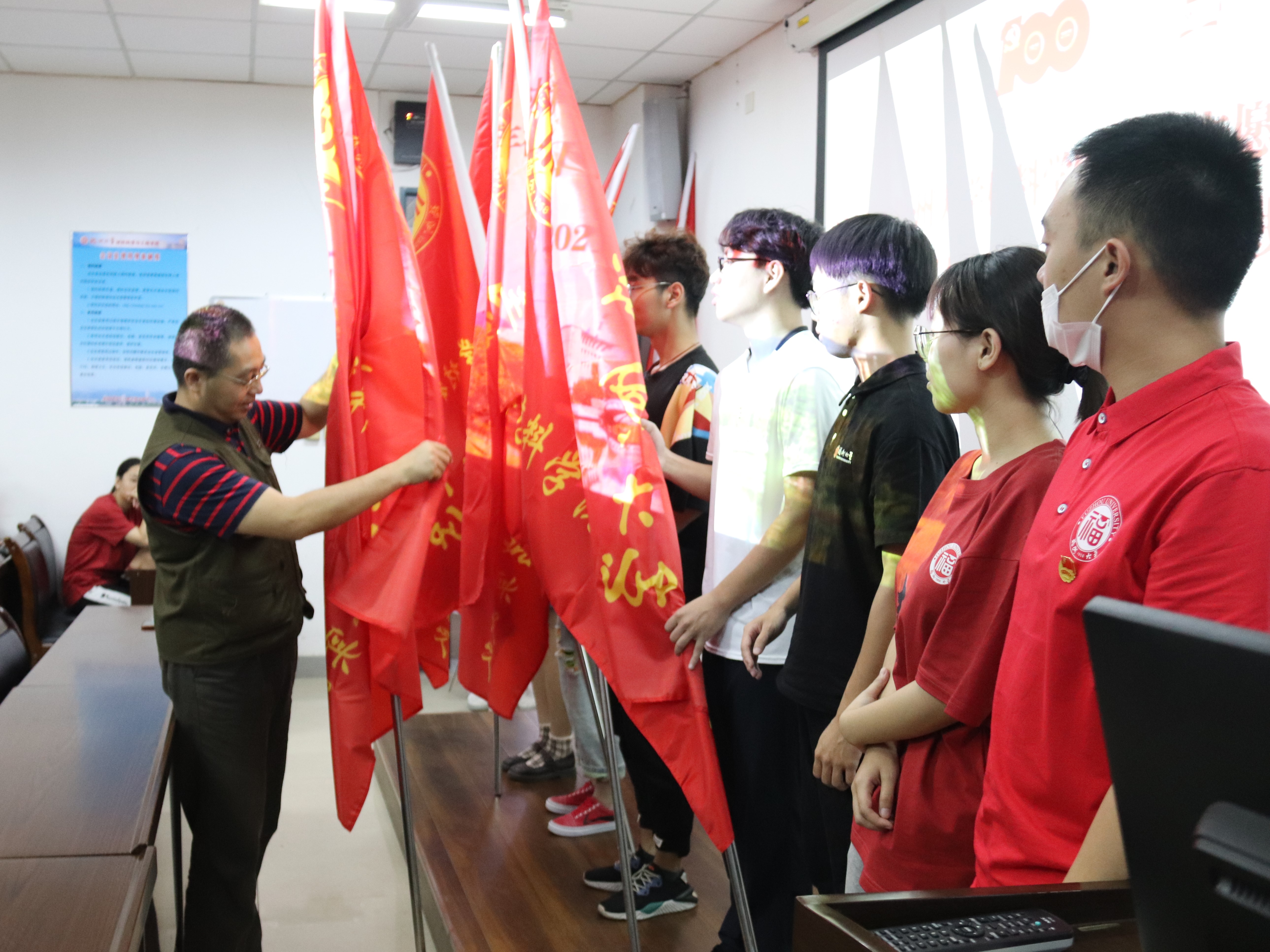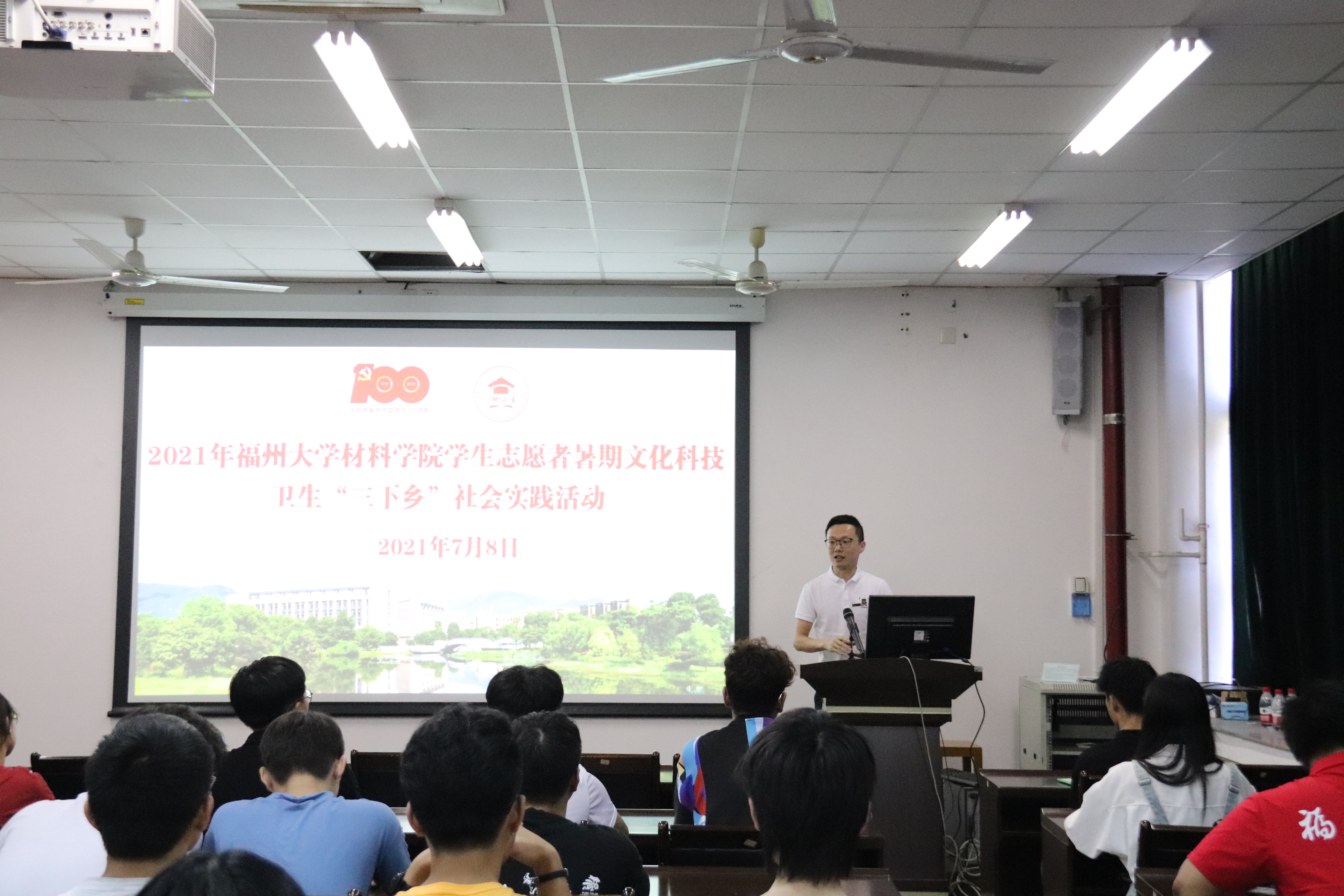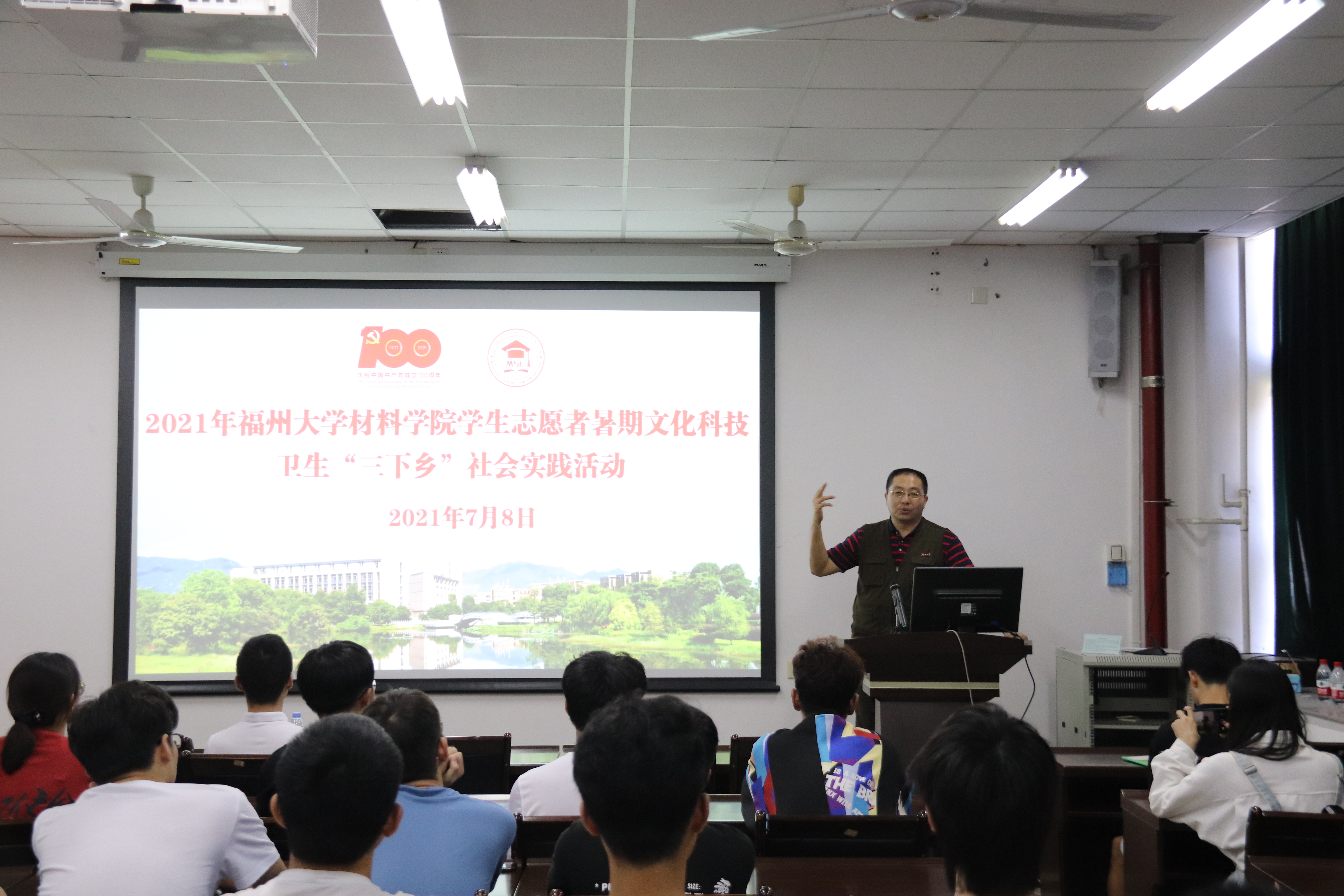 为激励成人网站 实践队队员以饱满的精神状态奔赴各地开展社会实践活动, 7月8日上午,成人网站 2021年学生志愿者暑期文化科技卫生“三下乡”社会实践活动出征仪式在材料楼404室顺利举行。成人网站 党委王剑龙副书记、王文栋辅导员出席出征仪式。王文栋老师主持本次仪式,各实践队的队员悉数到场。