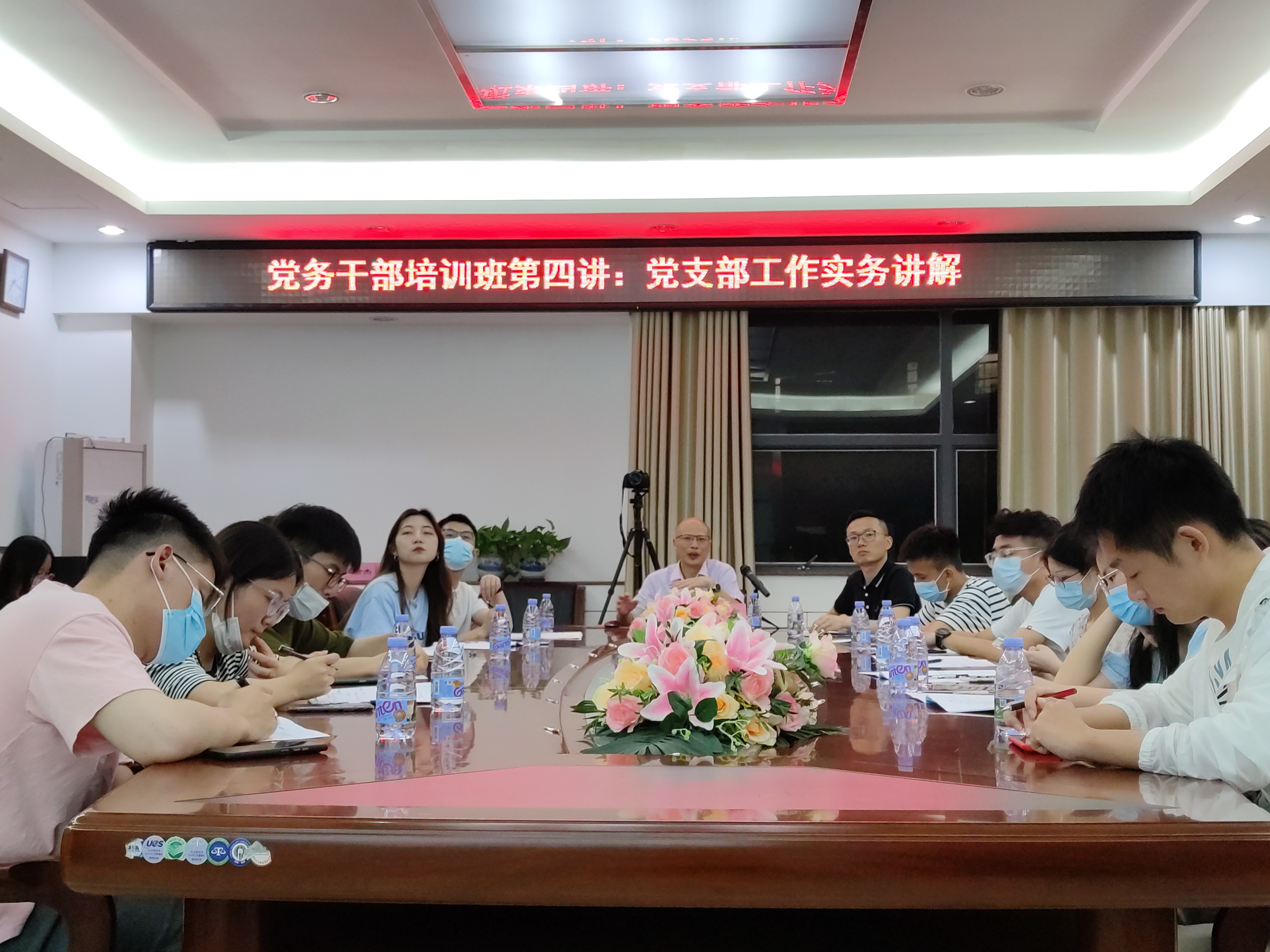 5月27日晚,学院于嘉锡楼313举行材料学院分党校学生党支部党务干部培训班第四讲,本次培训班的主题是《党支部工作实务讲解》,由环境与资源学院党委委员、组织员李响老师主讲,学院辅导员王文栋老师参会主持,学院学生党支部党务干部参加培训。