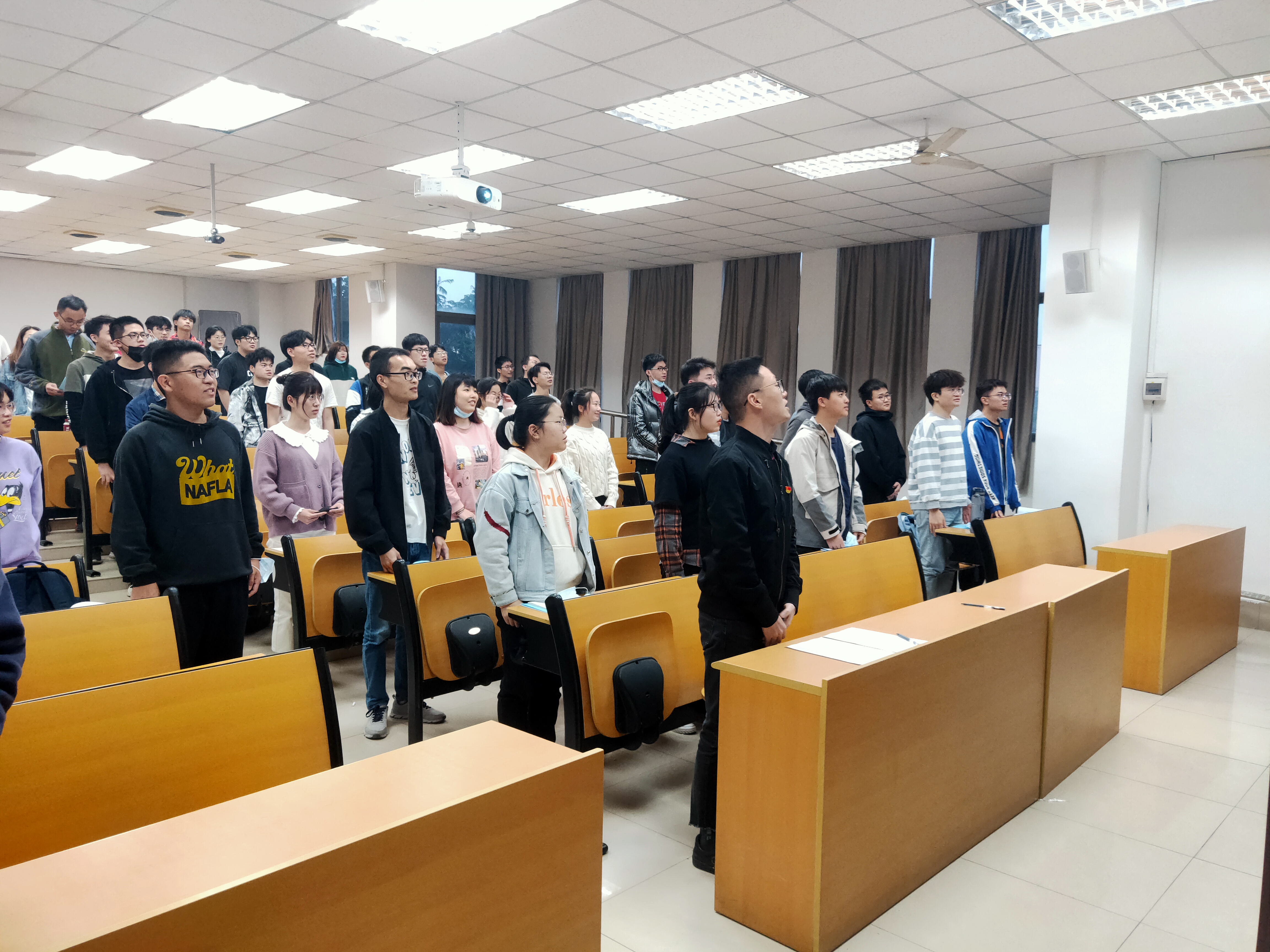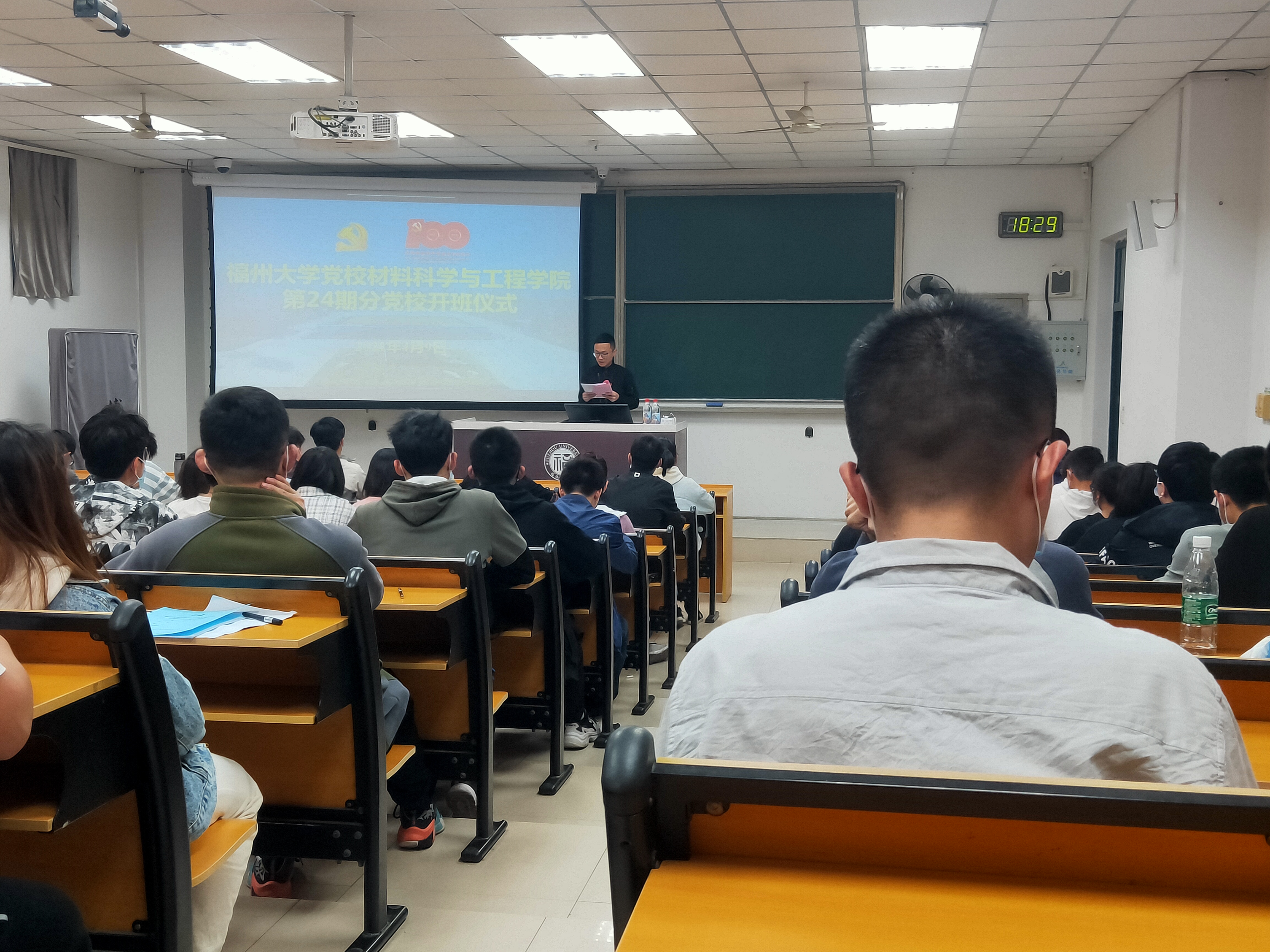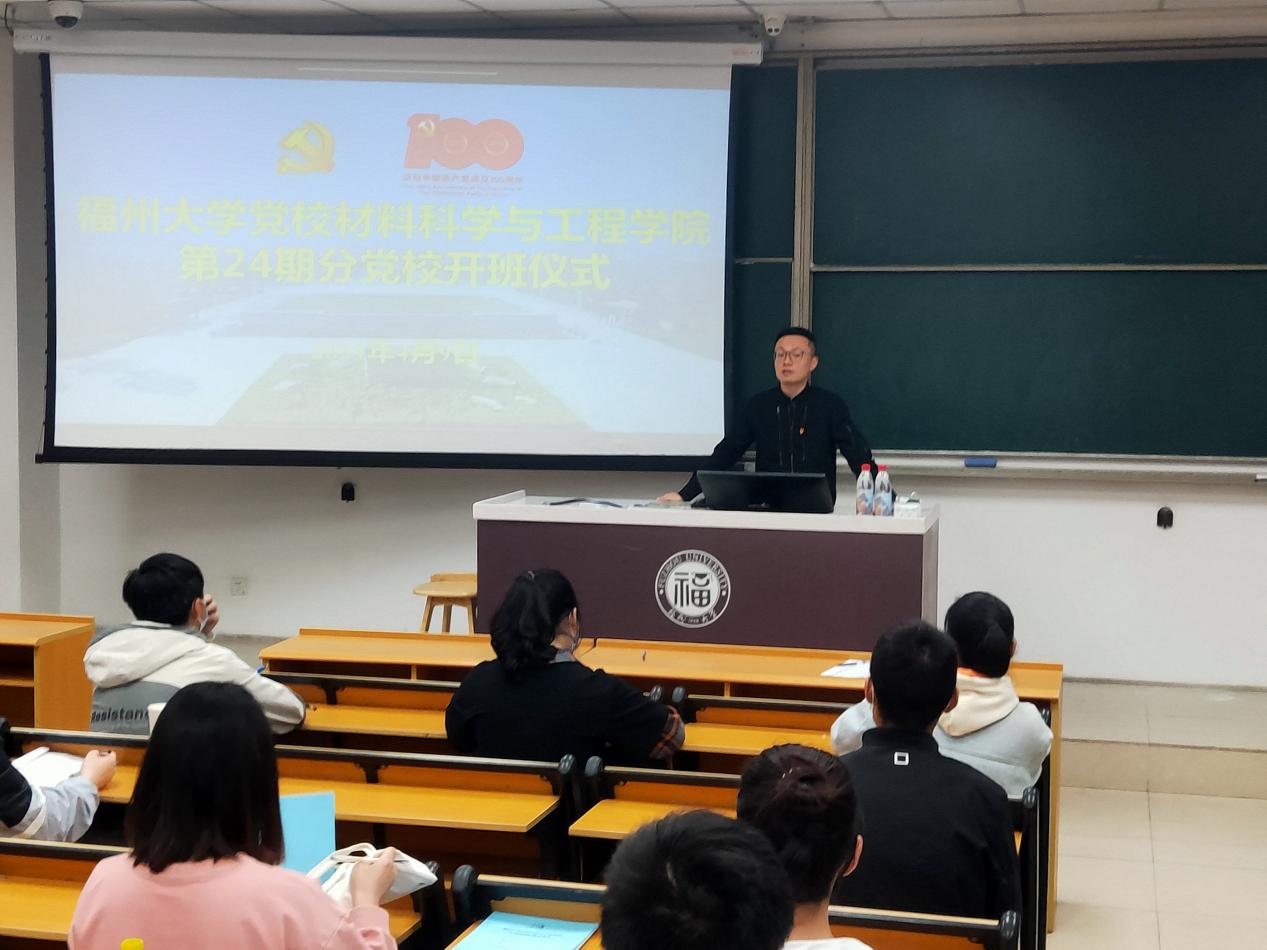 在开班仪式上,王文栋老师首先对本期培训班的顺利开班表示祝贺。紧接着,全体同学起立,共同奏唱国际歌,在雄浑的音乐奏毕后,王文栋老师进行发言。他强调,本次入党积极分子培训班是每一位要求进步学生的必修课,是接受党教育的好时机,希望大家通过分党校的学习,能够以习近平新时代中国特色社会主义思想和党的十九大精神为指导,深入学习贯彻落实党的十九 大精神,结合“再学习、再调研、再落实”活动部署、党史学习教育动员部署工作,加深对党章党规的理解,加深对党的认识,增强党性修养,坚定社会主义、共产主义信念,自觉拥护党的领导,进一步端正入党动机,不断坚定为共产主义事业奋斗终身的信念,向建党 100 周年献礼!