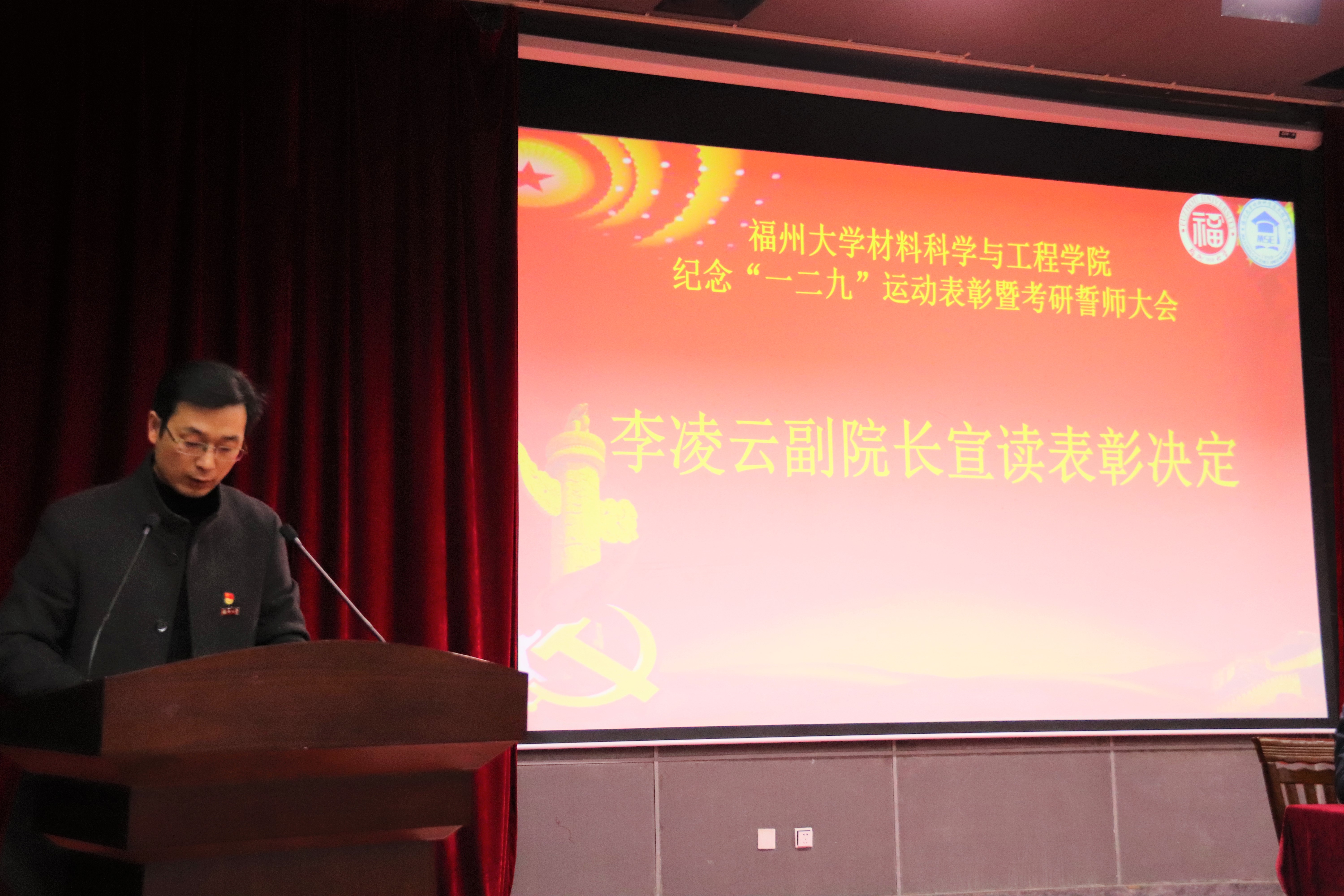 12月17日上午,成人网站 于图书馆明德厅隆重举办纪念“一二九”运动表彰暨考研誓师大会。成人网站 党委倪朝兴书记、党委王剑龙副书记、李凌云副院长、林梅金副院长、团委书记黄真老师及全体辅导员出席会议,各年级本科生代表参会。大会由成人网站 党委王剑龙副书记主持。