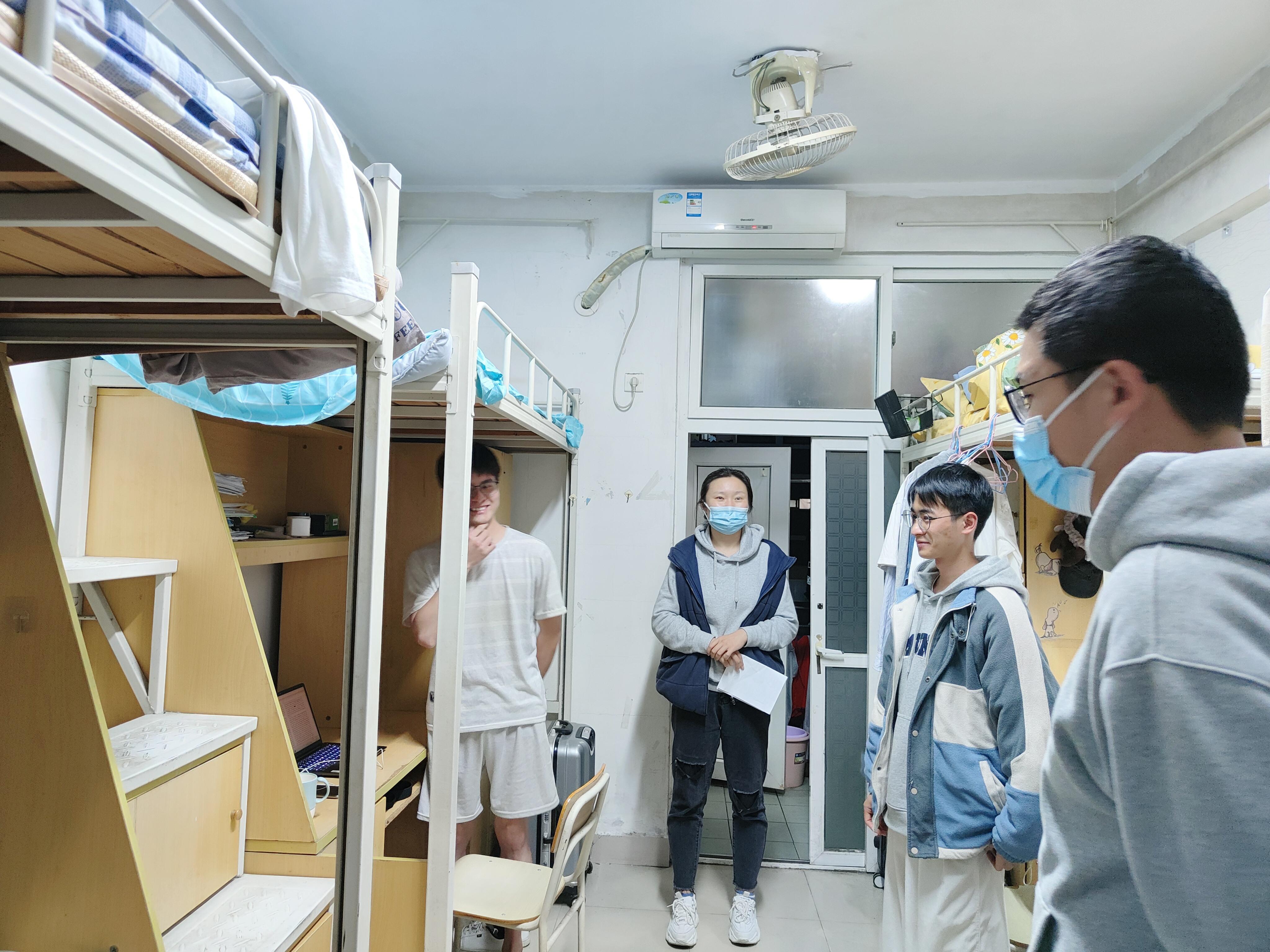 在生活三区学生公寓36号楼,牛秋月老师通过与同学们的交谈深入了解成人网站 研究生校园疫情防控期间在宿舍的学习与生活状况。针对同学们提出的疫情防控相关疑问,牛秋月老师进行了一一解答,并对个别宿舍存在的卫生、用电等隐患提出了整改要求。