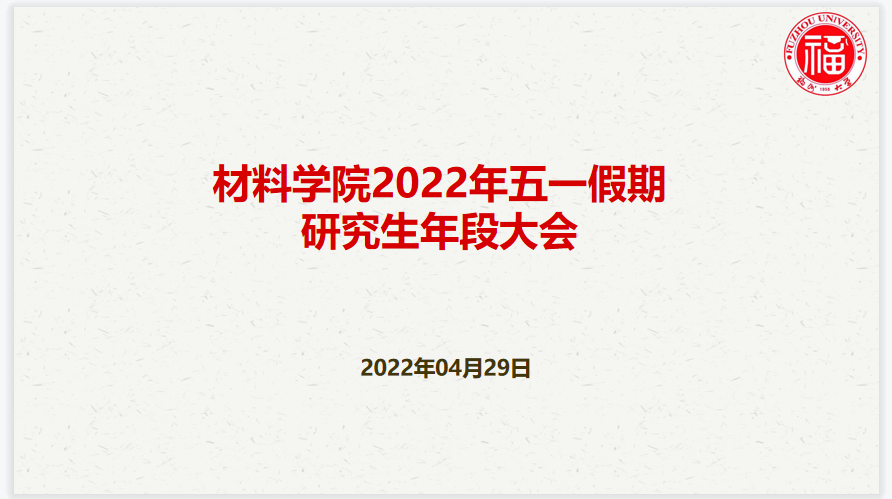为传达学校、学院学生工作相关会议精神,做好“五一”期间学生管理工作,继续落实常态化疫情防控工作,成人网站 于2022年4月29日晚通过腾讯会议召开研究生安全主题年段会,会议由院团委书记、研究生辅导员牛秋月老师主持,兼职辅导员郑晨宇、杨娟、沈宏立及成人网站 全体研究生出席会议。