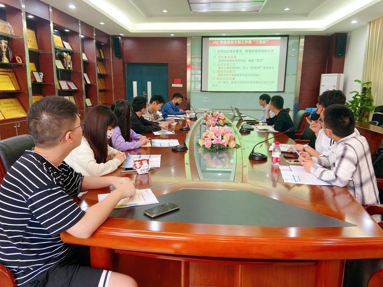 最后,他提出三点要求:一是思想上高度重视,各总支要做好全面动员,加强党员组织意识,使党员明确组织关系转接工作的重要性;二是做好会议精神传达,组织党员集中学习《党员转移组织关系指导手册》,让每位党员知晓毕业生党建工作的相关要求和注意事项;三是工作过程中要做到认真操作、严格把关、紧密跟踪,尽早落实,做好服务,保证毕业党建工作顺利完成、高质量完成。