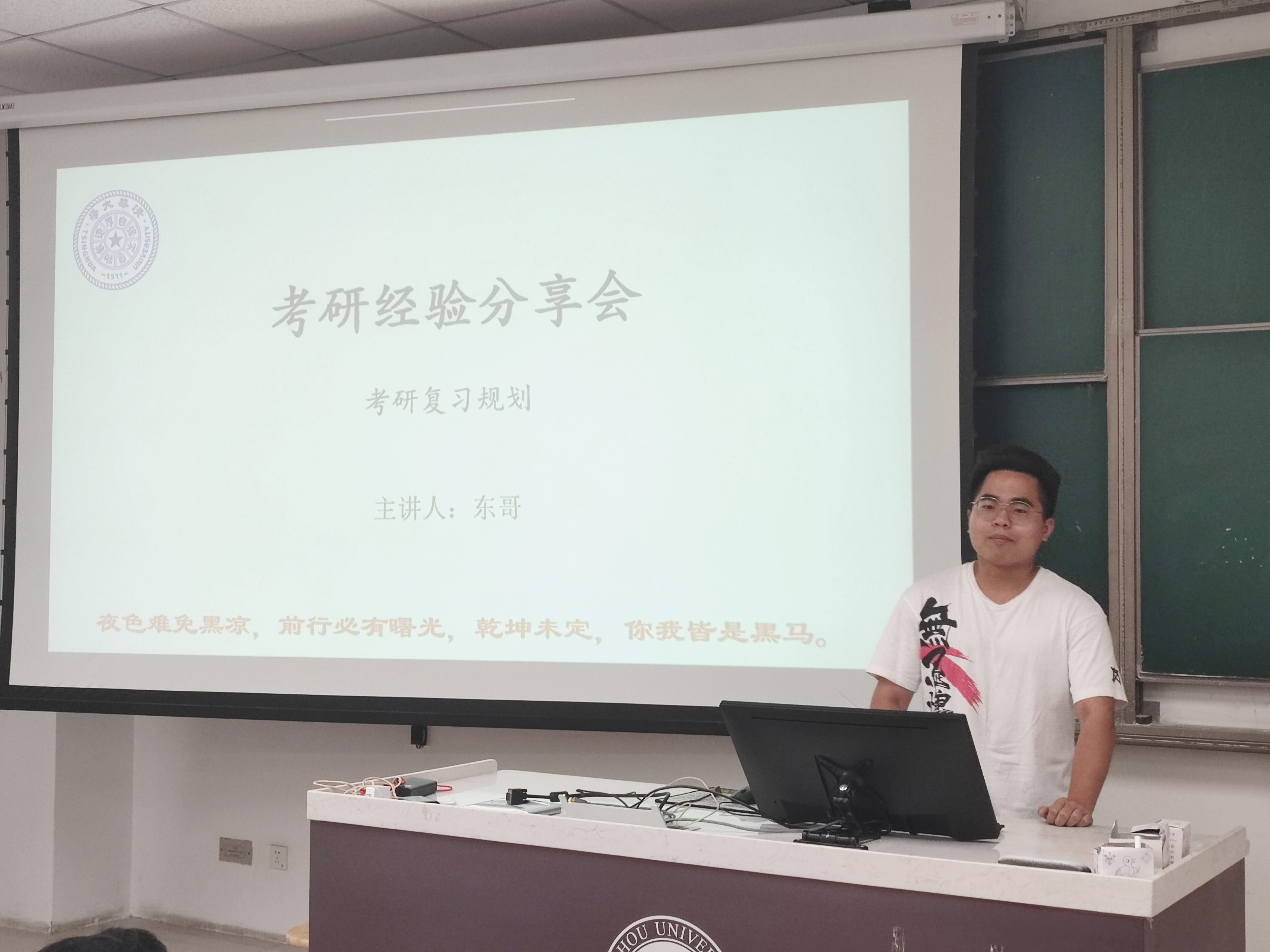 接着,陈孔发老师详细介绍了近三年来学院研究生复试情况,他结合过去三年学院考研情况具体数据对考研形势、调剂方案、往年录取及调剂情况做了分析,他建议同学们,不仅要努力备考,也要谨慎选择,认真考虑好合适的报考方向。