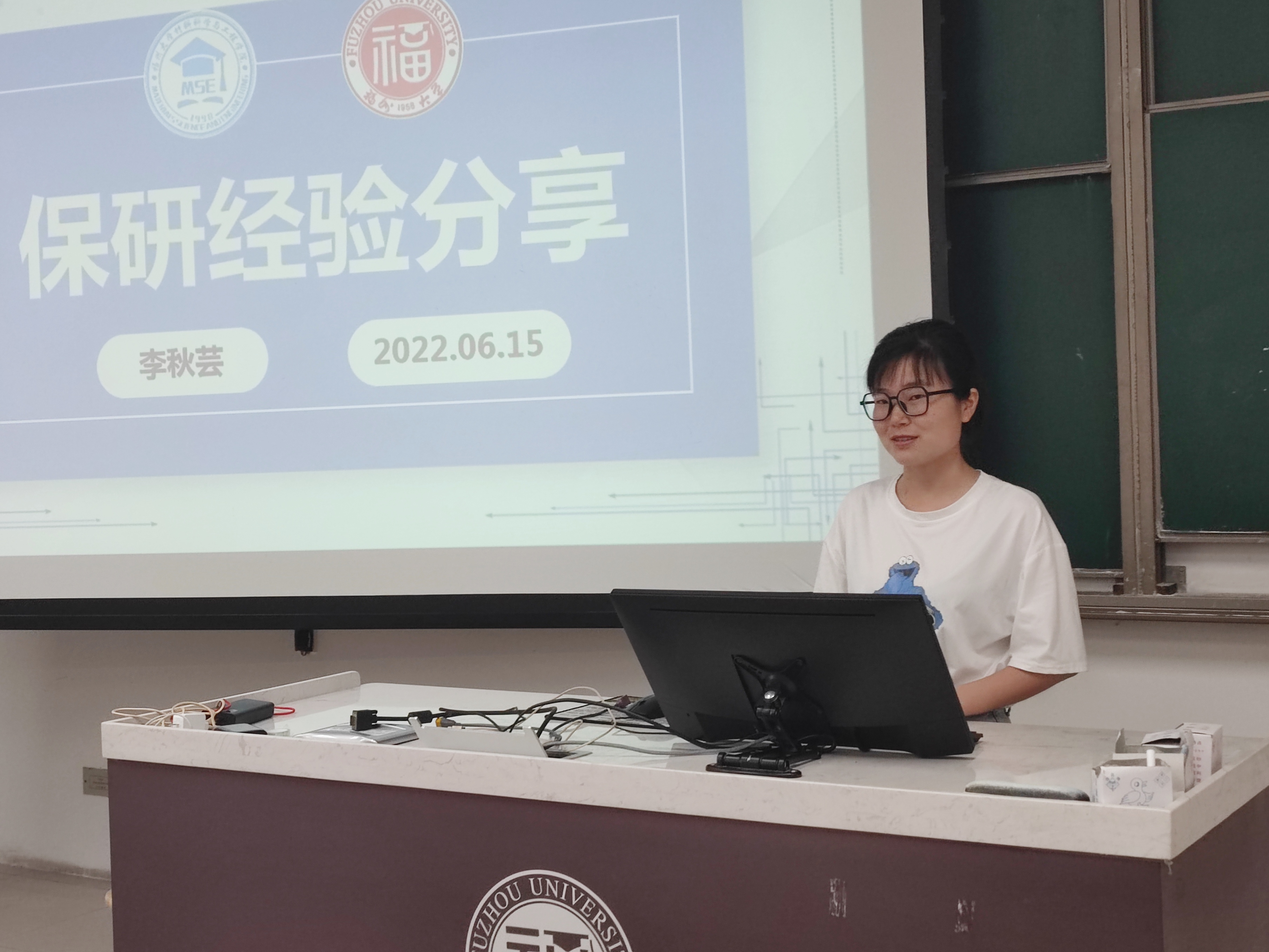 首先,2018级本科升学代表陈旭晗、李秋芸、林胜东三位同学进行了经验分享。陈旭晗提醒同学们,考研一定要尽早选择好院校专业、规划好时间安排;李秋芸则详细介绍了保研流程,并介绍了保研申请过程中需要注意的细节,建议同学们学会认清自己,选择好适合自己的人生道路;林胜东则向同学们详细介绍了考研备考过程中每个月的规划,为同学们提供了宝贵的经验。