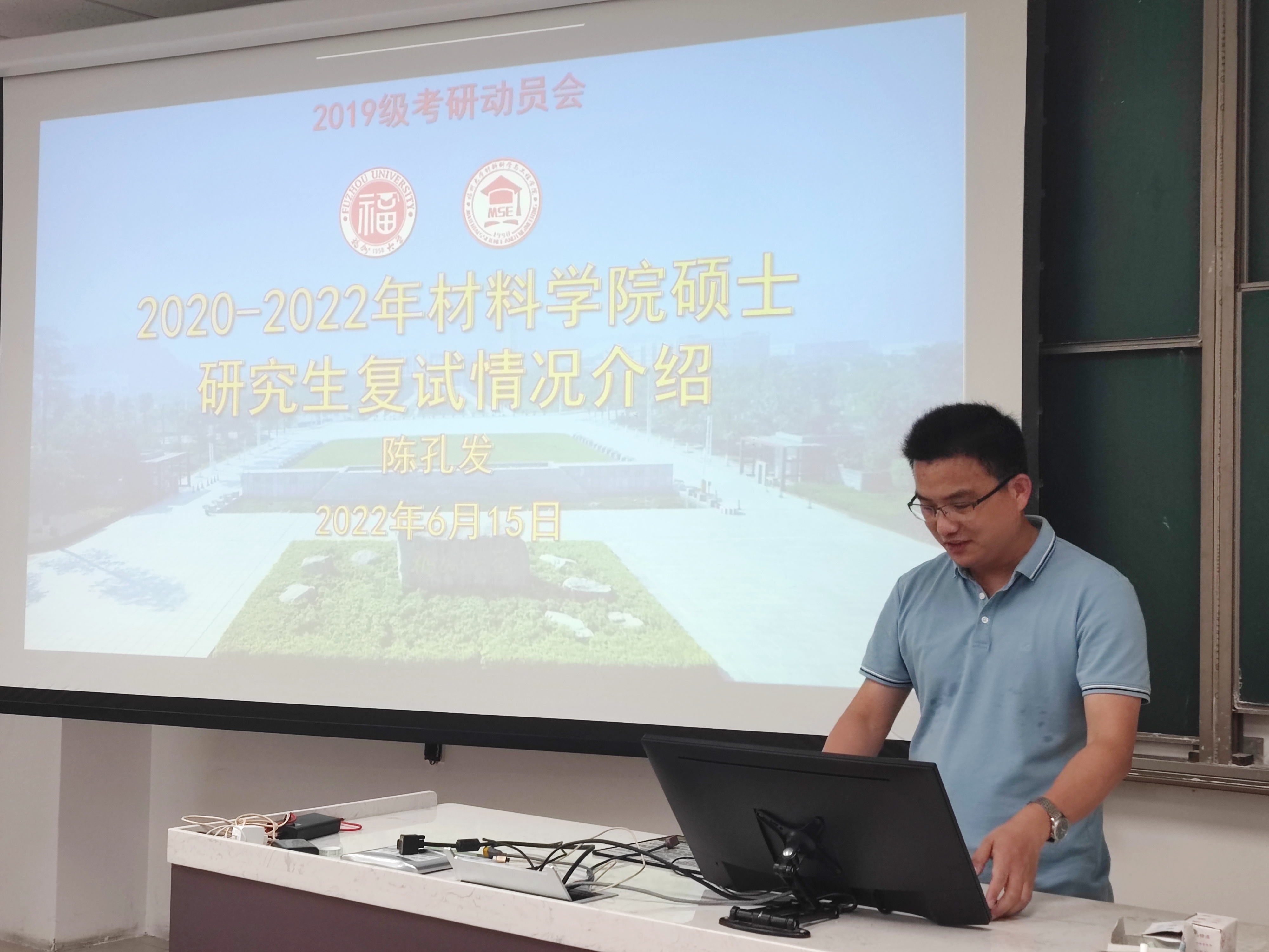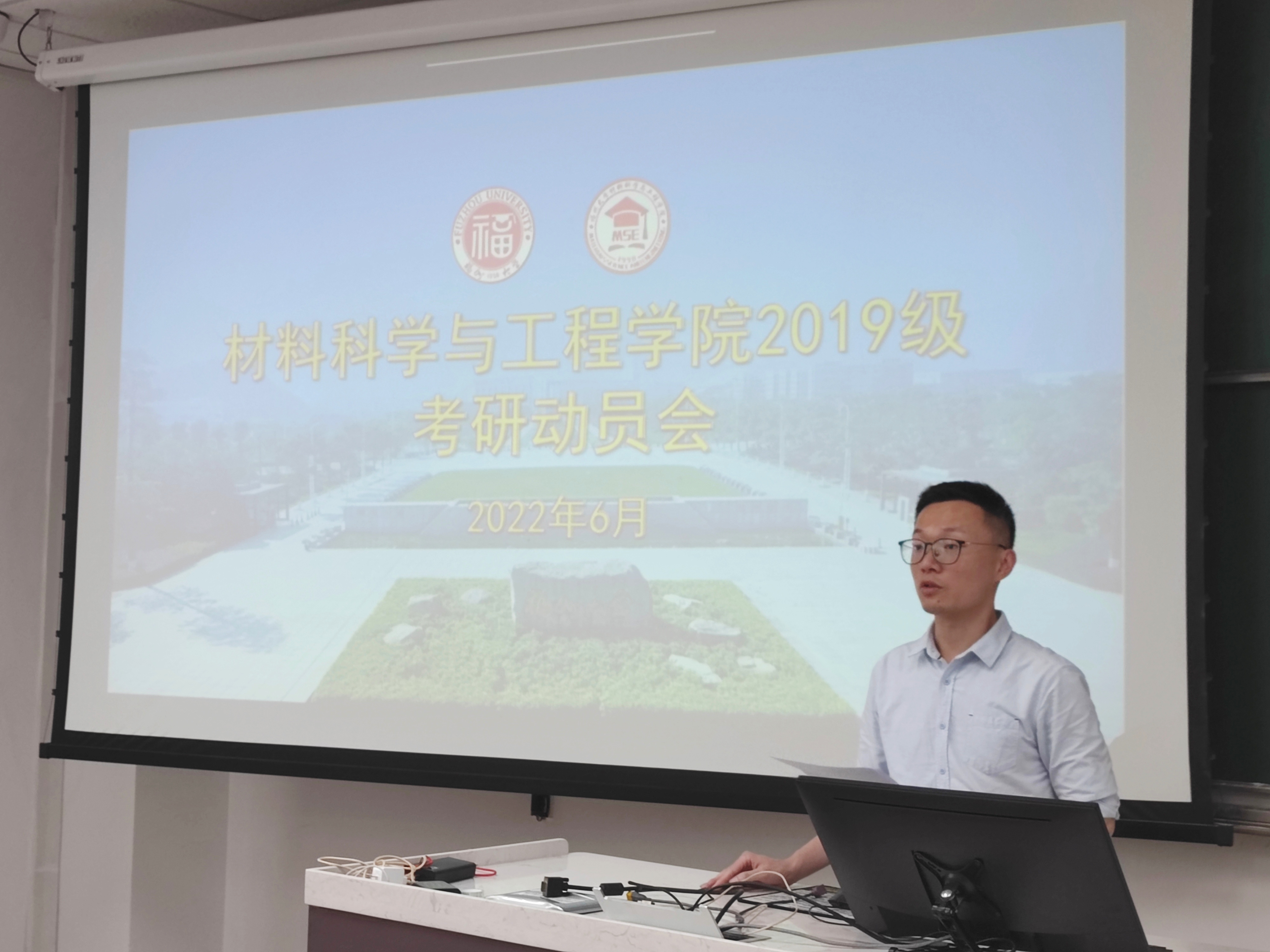 6月15日上午,学院于西2-201顺利举行了2019级考研动员会。学院党委副书记张志忠老师,副院长、班主任林枞老师,院长助理、硕士学位点负责人陈孔发老师,材料科学与工程专业负责人、班主任徐峰老师、高分子材料与工程专业负责人林腾飞老师,班主任邓平老师、郑晶莹老师,辅导员和2018级本科升学代表出席本次大会,学院全体2019级本科生参加本次大会,大会由王文栋老师主持。