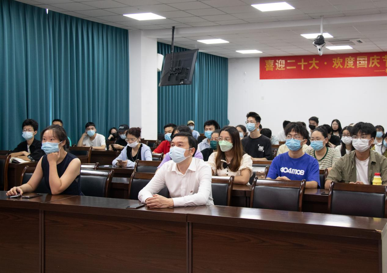 升旗仪式后,材料学院开展了“观影中庆祖国华诞,锦绣里守国之芳华”观影活动,院党委张志忠副书记出席本次活动,团委书记牛秋月老师、辅导员王怡老师以及学生代表参会。老师、同学们齐聚一堂,共同在国庆节观看电影《我和我的祖国》。影片结束后,同学们就自己的观影感受进行分享,学生代表表示在国庆节与二十大即将召开这样一个时间节点,每个材料人都将把个人与时代相结合,投身建设祖国的伟大事业中,不负使命,无愧青春。