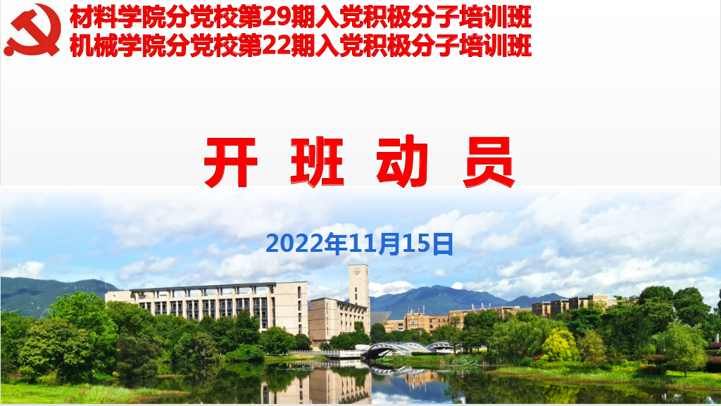 11月16日,材料学院分党校第29期入党积极分子培训班开班仪式于钉钉平台顺利开展。本次开班仪式由王文栋老师主持,全体培训班学员参加。