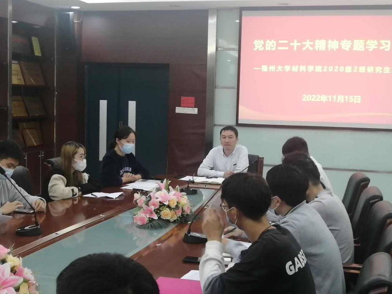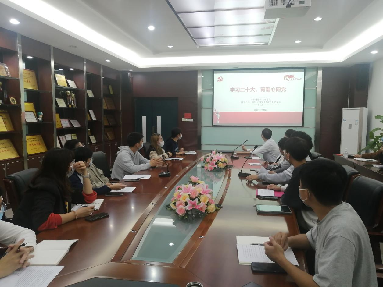 最后,2020级2班研究生党支部全体党员分享了关于党的二十大的心得体会,每位党员在会议中各抒己见,友好交流,表明了材料报国,强国有我的矢志不渝的理想抱负。