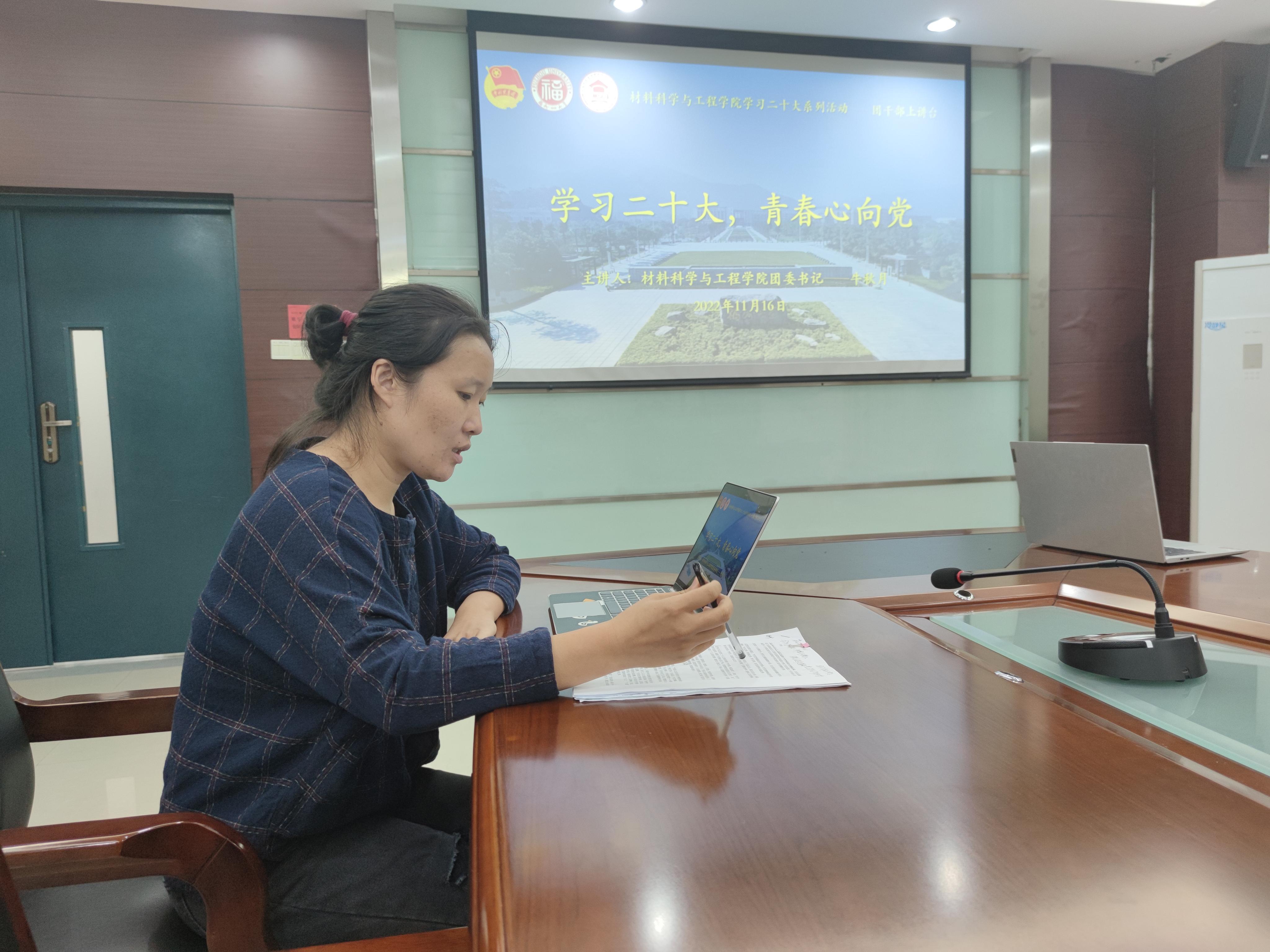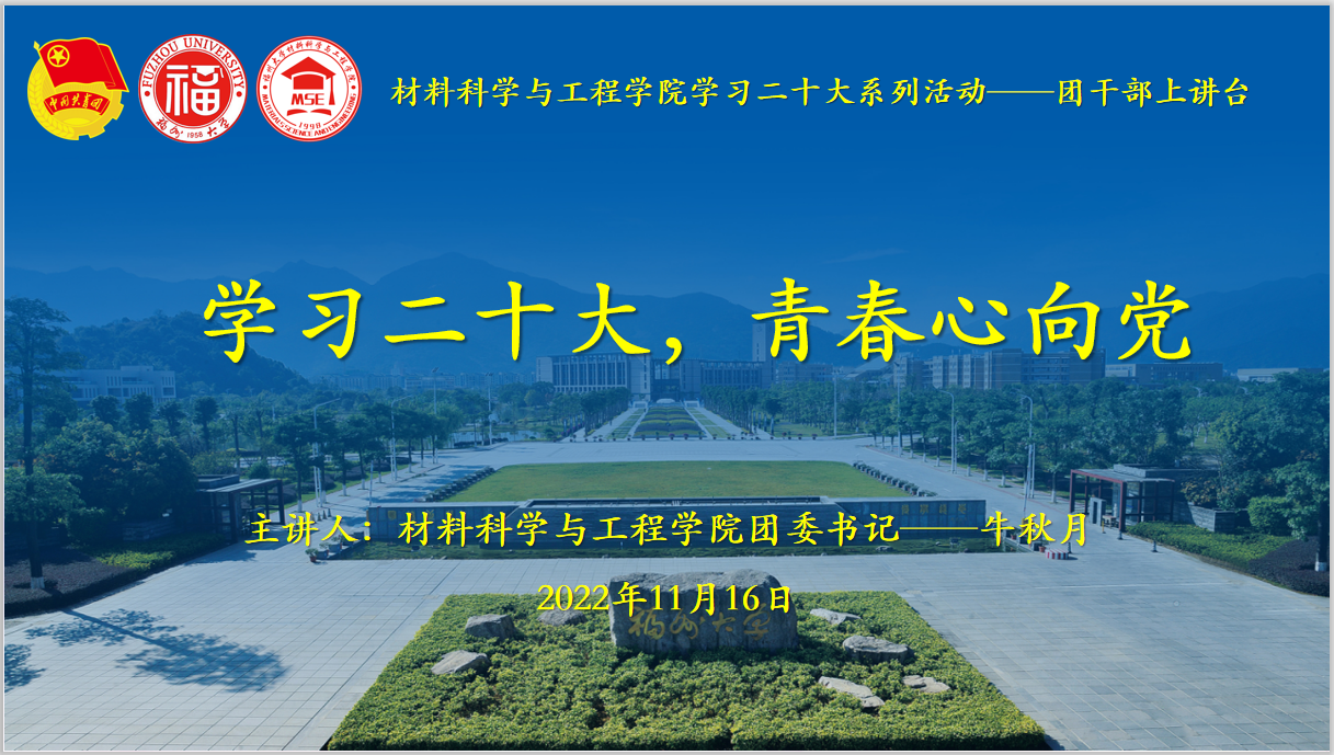 11月16日晚21时30分,材料学院学习二十大系列活动——团干部上讲台活动于腾讯会议顺利开展。本次活动由学院团委书记牛秋月老师主讲,学生会学生骨干、学院全体团支部书记参会。