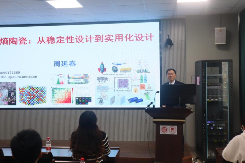 周延春教授首先详细阐述了高熵金属和高熵陶瓷的概念、主要特征、主要途径及其主要作用等内容。他在报告中指出高熵陶瓷相关研究为材料设计和属性定制带来了新的机遇。不同于高熵金属,高熵陶瓷的晶体结构和电子结构的多样性为性能调整提供了广阔的空间。它除了具有增强,硬化和低热导率外,还具有大介电常数,高超离子电导率,严重的各向异性热膨胀系数,强电磁波吸收性等新特性。另外,他还强调了材料处理,产物表征和特性预测方面面临的挑战。最后,周教授详细地给我们分享了面向军用和民用不同需求的高熵陶瓷设计方案。