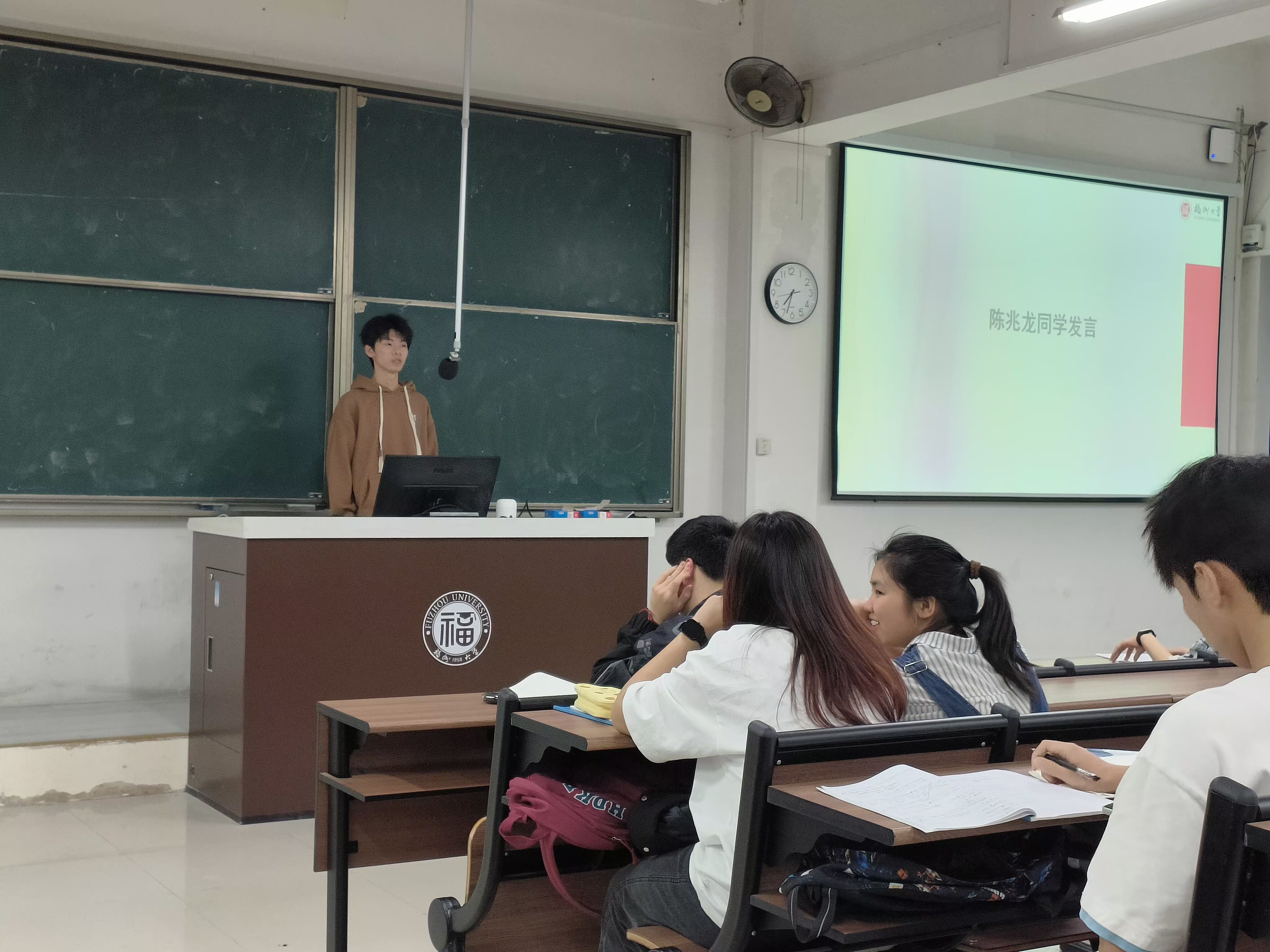 最后,郑嘉莉同学给同学们分享了无偿献血的相关知识。她从无偿献血的意义出发,说明了无偿献血是无私奉献、救死扶伤的崇高行为。接着,她就无偿献血的基本要求展开了说明,让同学们对献血的了解进一步加深。最后,毕诗雨、周洪锴、向俊城、陈兆龙四位同学上台分享了自己献血的经历与感受,从献血前的紧张到献血后的成就感,鼓励越来越多的同学们无偿献血、奉献爱心。