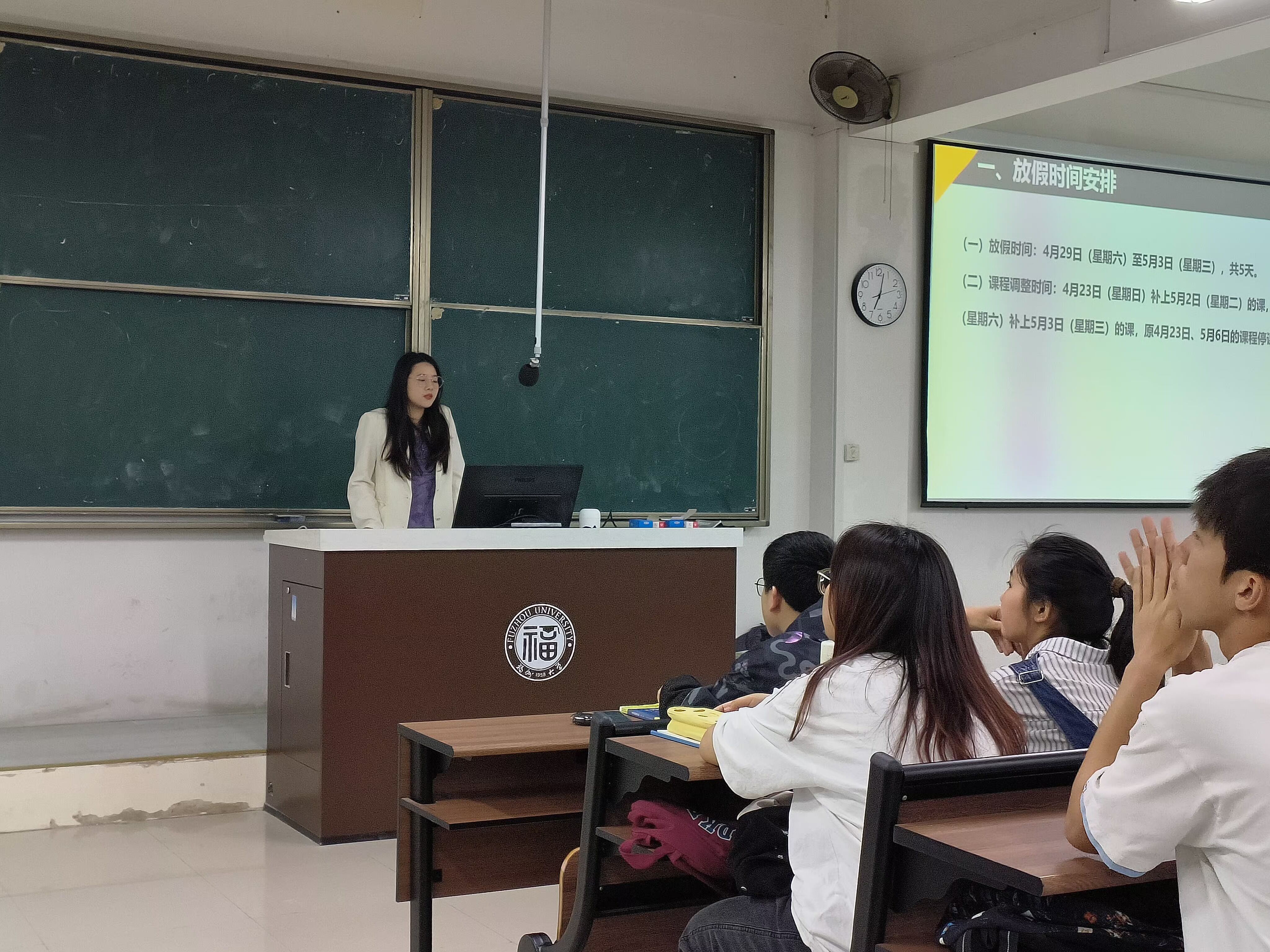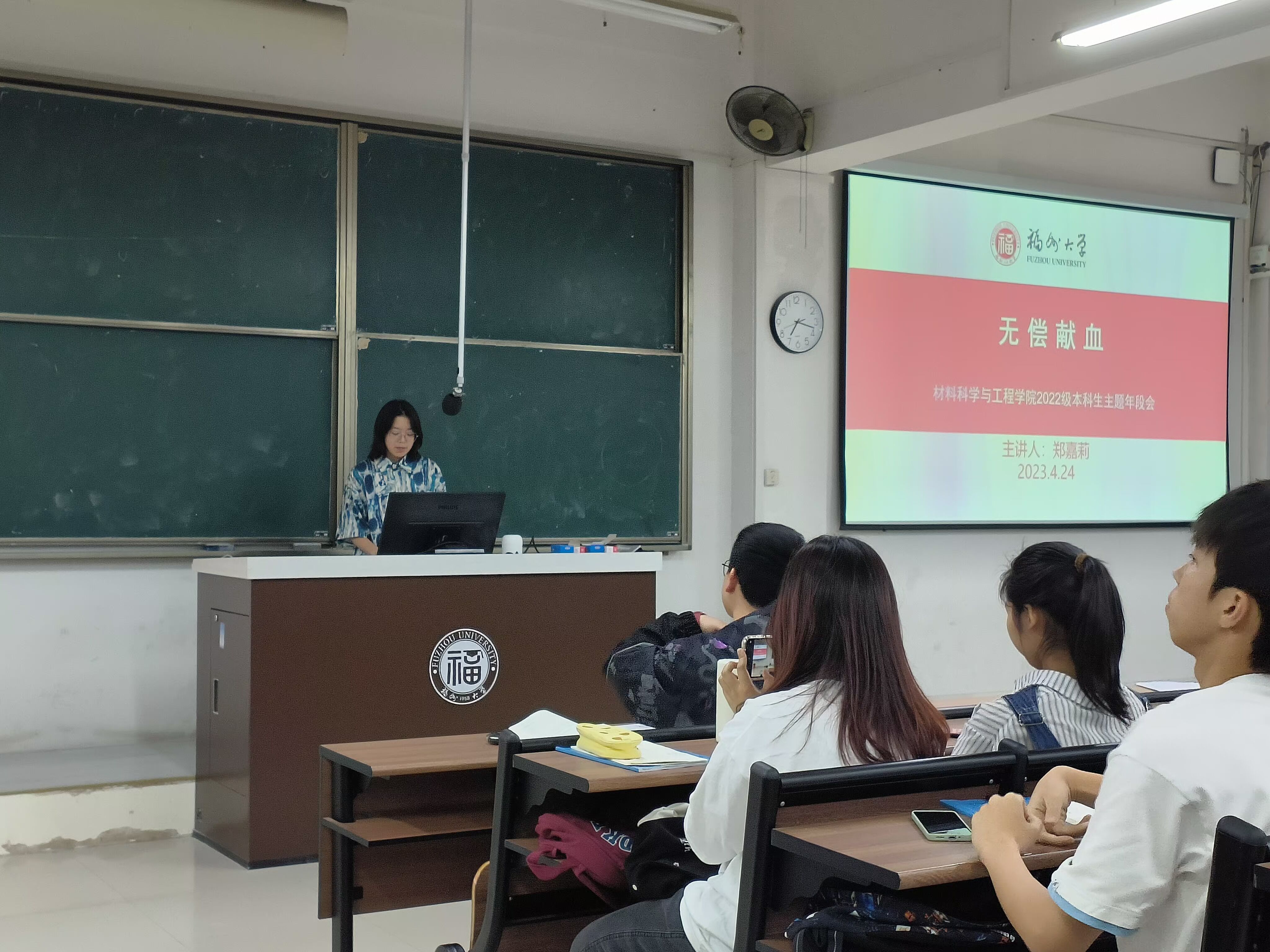 为了迎接五一假期,做好假期前后的工作部署,以及让同学们进一步了解无偿献血,成人网站 于4月24日晚上召开了2022级本科生五一假期管理与无偿献血主题年段会,由专职辅导员张丽芬老师主持,全体22级本科学生参加。