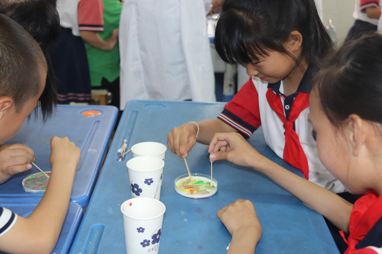 活动全程,师生间积极互动,氛围良好;小朋友们兴趣盎然、勤于思考,积极提问,他们看着神奇的实验现象时而惊喜,时而索眉,时而顿悟大笑。收获的笑容洋溢在同学们的脸上,对材料科学的向往之情充斥着同学们的心田。
