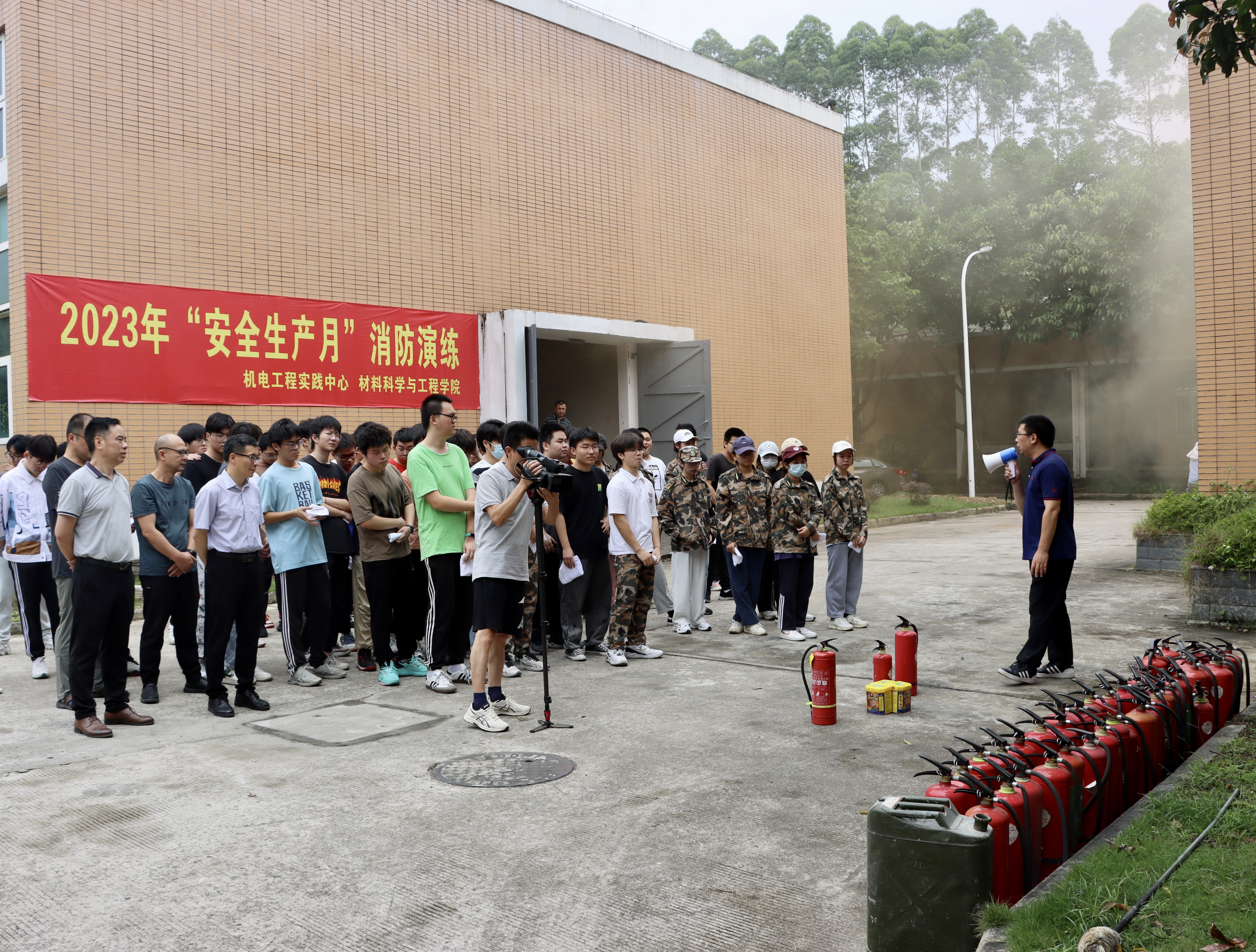为深入开展学习贯彻习近平新时代中国特色社会主义思想主题教育,深入贯彻落实习近平总书记关于安全生产的重要论述,坚持弘扬“人民至上、生命至上”理念,持续聚焦校园消防安全,6月15日上午,材料学院联合机电工程实践中心举办2023年“安全生产月”消防演练活动。