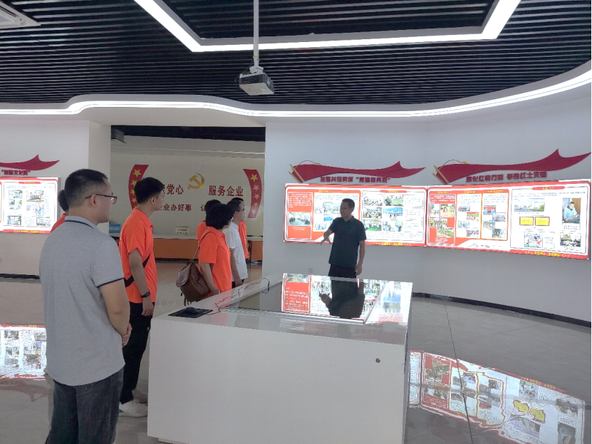 实践队首先来到了永定工业园区党群服务中心,中心副主任林腾庆向实践队介绍,为了推进基础设施建设、污染物排放整治与安全生产工作,园区专门成立了党员突击队全面开展园区环境、厂房整治工作。此外,园区还组织园区非公党支部开展“校企合作”,通过产业共建、党建共建和人才共育等方式,实现校企共赢。