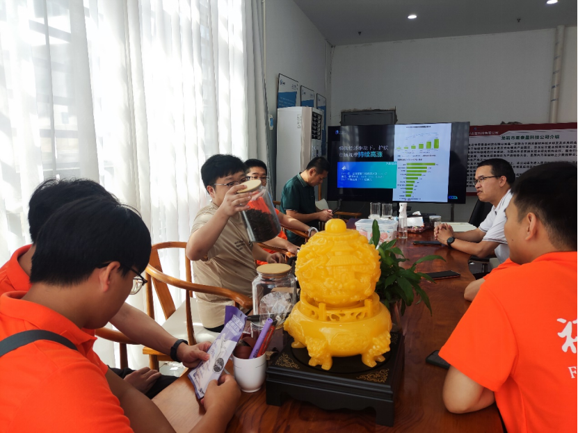 最后,实践队来到龙岩市青橄榄环保科技有限公司。在林腾庆副主任、董事长助理罗琴和副总经理温柏东的陪同下,实践队参观了青橄榄的产品展厅和生产车间。实践队被企业先进的工艺装备和浓厚的技术创新氛围所吸引,并就企业核心技术竞争力等课题进行了充分交流和探讨。
