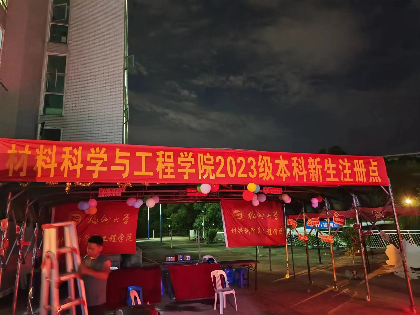 材料学院团委、学生会学生干部及各班班导班助提前返校,望以万全准备迎接新生,争取为材料新生营造舒适的住宿环境和归属感。材料学院团委、学生会学生干部及各班班导班助每三人为一小组,张贴宿舍信息和宣传海报及标语,设立签名墙、合影框。不惧风雨,认真勤奋,秉持着吃苦耐劳的精神,大家既分工明确,又团结一致,体现出了饱满的热情和积极的状态。最后,检查人员对迎新工作准备情况进行了检查,排除可能存在的安全隐患,并对损坏物件及隐患位置进行报修。