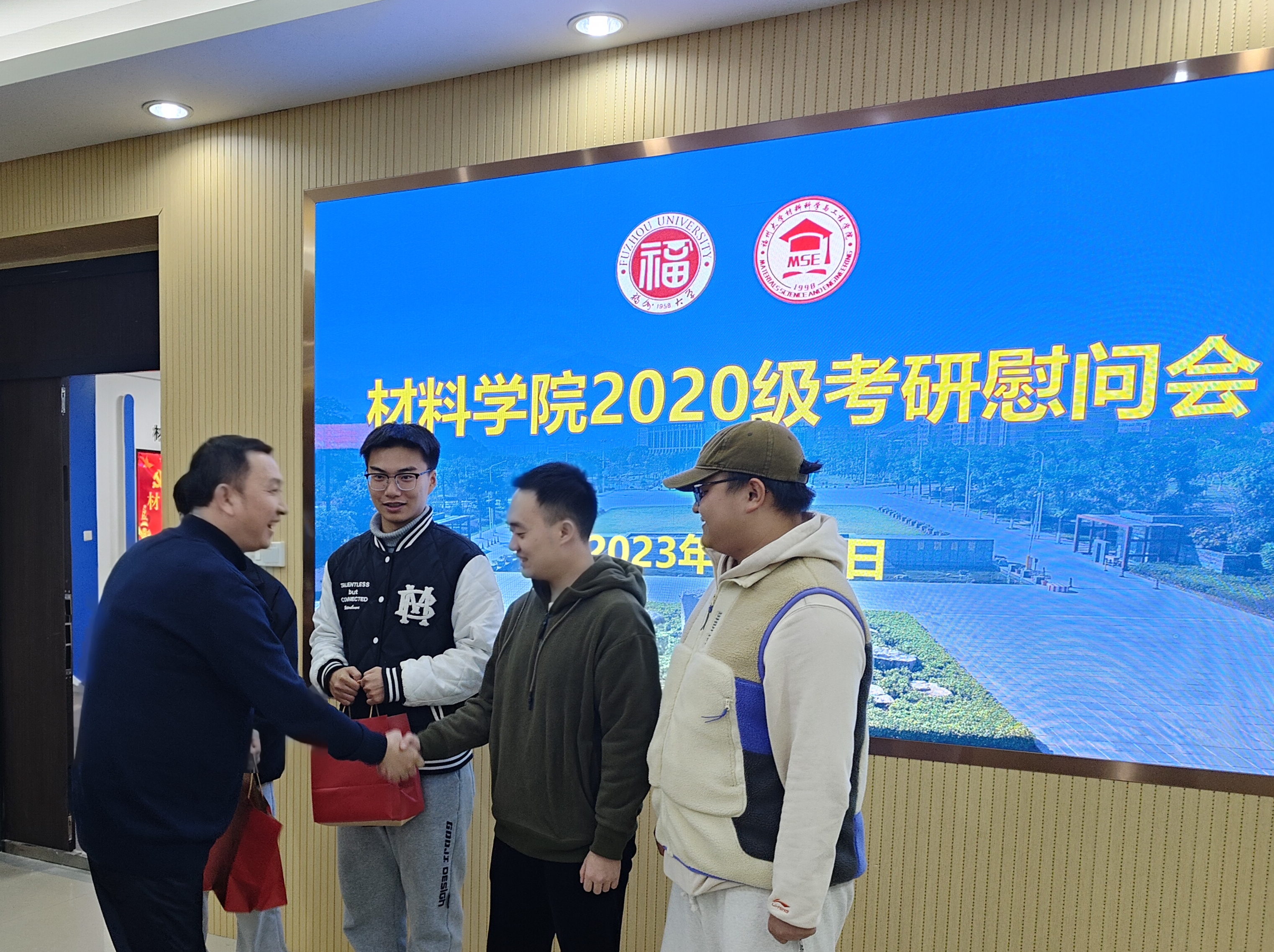 12月4日下午,学院特于嘉锡楼313会议室召开考研慰问会,学院党委张志忠副书记和团委书记牛秋月老师出席,由辅导员张丽芬主持本次会议。会上,张志忠副书记针对同学们提出的学习、生活等方面的问题进行解答,希望同学们安心备考,学院会尽力帮助解决困难。张志忠副书记告诉同学们贵在坚持,难在坚持,成在坚持,要勇敢面对考研的压力和困难,愿大家以渺小启程,以伟大结束!接着,领导老师们为学生代表发放了考研礼包。
