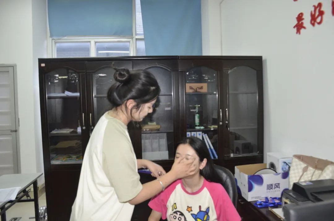 拍摄前的阶段,我们分别让组内成员王安琪和外请化妆人员为校工人员进行简要的化妆与做适合的造型,以便后续拍摄工作顺利进行。