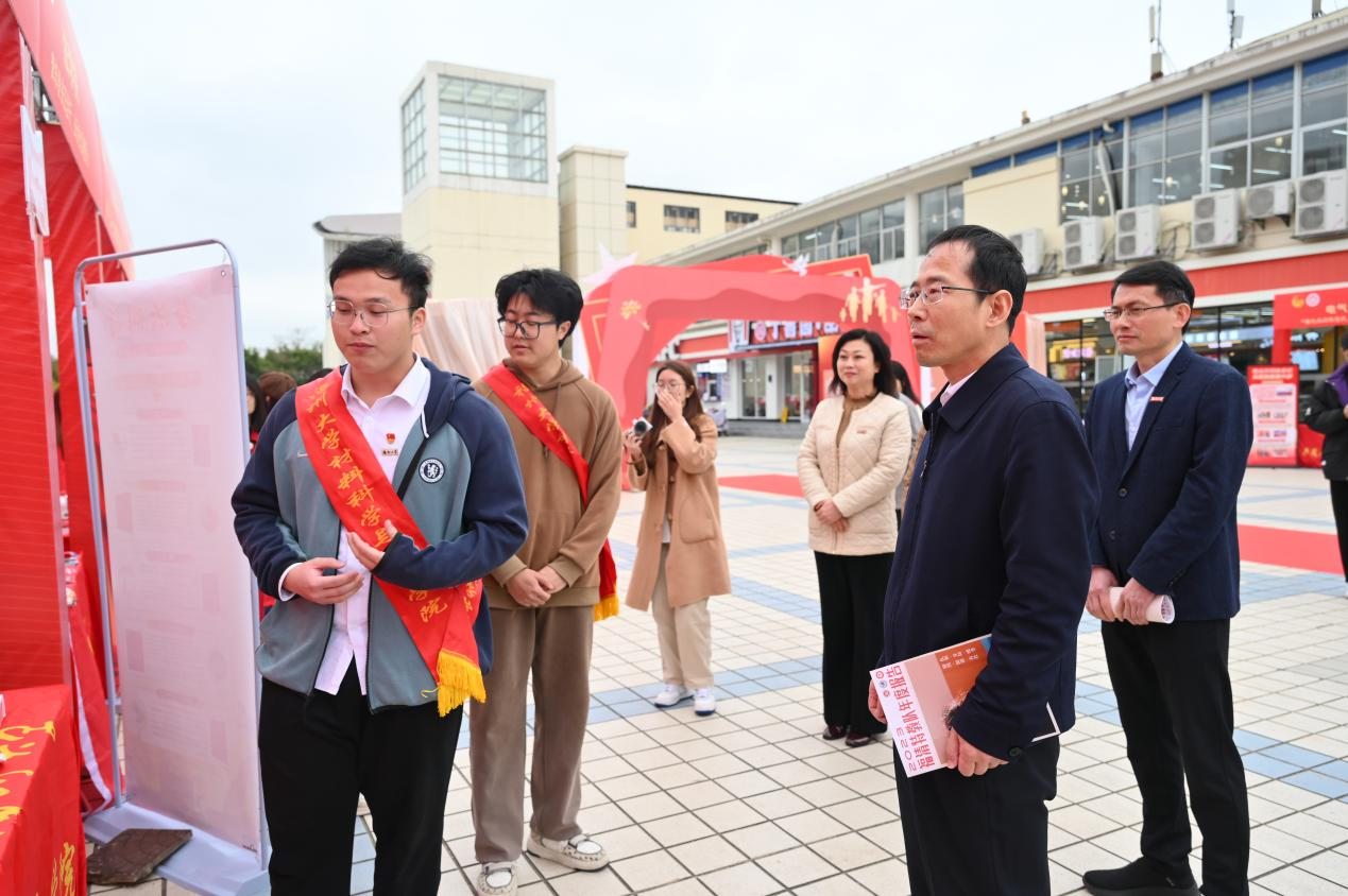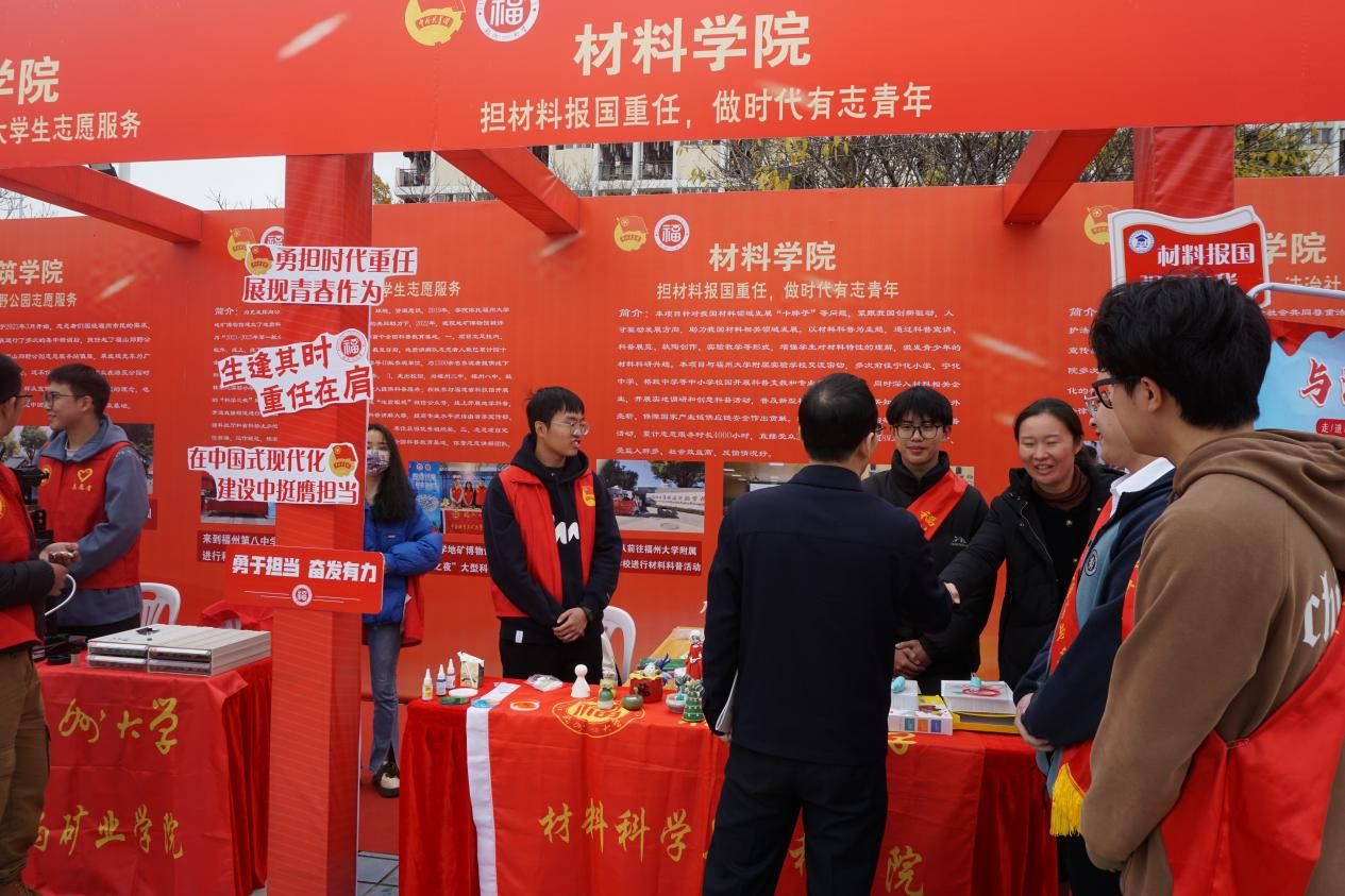 团中央青年志愿者行动指导中心主任石新明、共青团福建省委副书记魏玲出席此次项目交流会,校党委副书记黄身勇陪同,成人网站 同学在交流会的现场向各位老师讲解了学院“担材料报国重任,做时代有志青年”特色志愿服务项目。