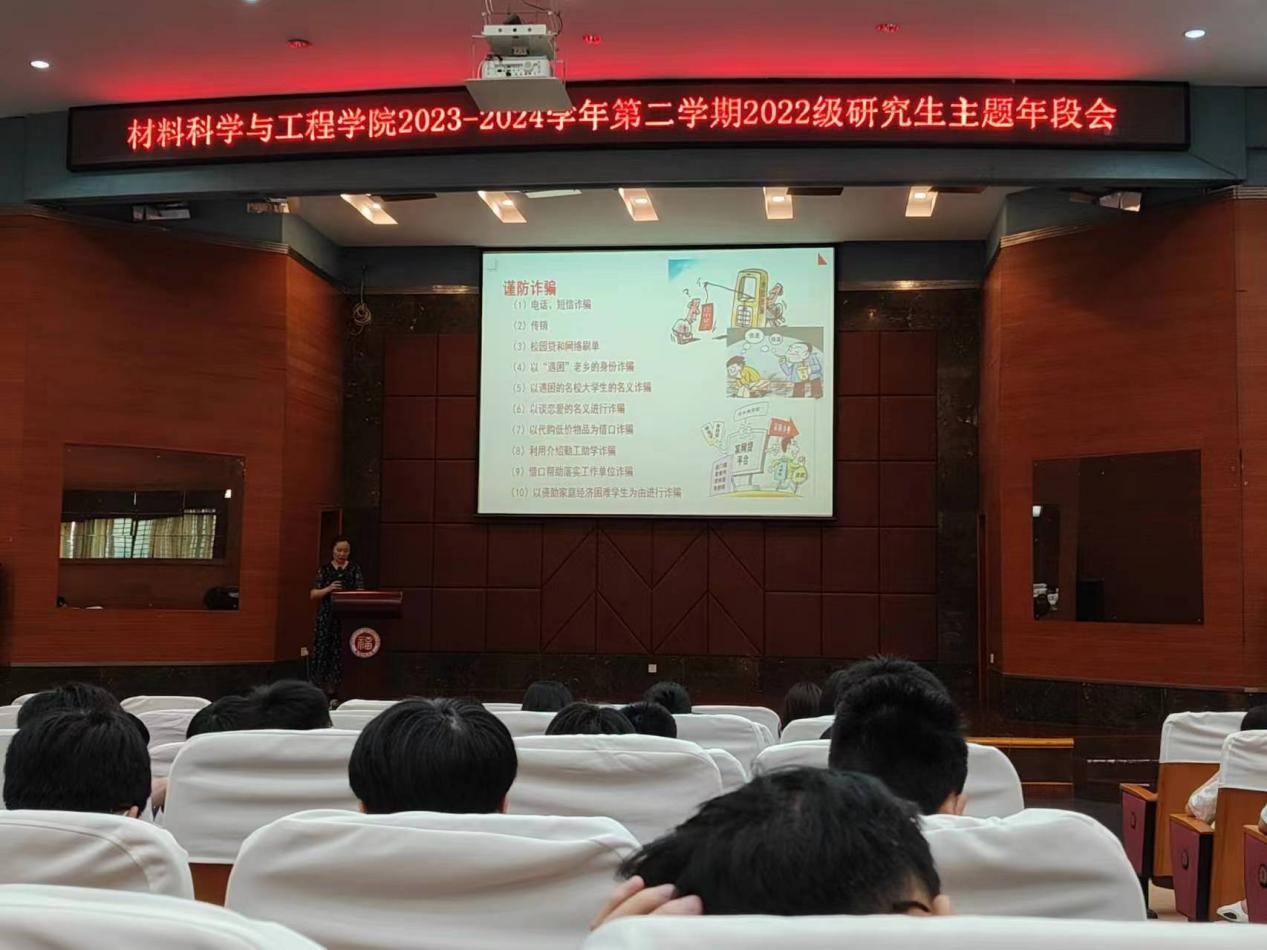 会上,牛秋月老师就暑期留校日常安全作了重要强调,围绕着防火防盗防诈骗、宿舍安全、饮食安全、交通安全和网络安全等方面进行了安全教育。为了满足毕业班学生了解就业形势的需要,牛秋月老师解读了材料学院历届硕博生的升学和就业情况,以及福建省2024年度选调生选拔工作政策和工作安排以及公务员录用体检通用标准,让大家有了更清晰的目标。同时,牛秋月老师强调了查找招聘信息的途径,需要注意的网签流程和需要准备打印的文件材料。接着,牛秋月老师带领大家一起深入学习《新时代新征程中国共产党的使命任务》一文,引导全体研究生树立材料报国远大理想,珍惜最后一年的在校时光,打牢专业基础,为发展新质生产力贡献材料力量。最后牛秋月老师针对调查问卷中同学们反馈的相关问题,对毕业生提出的困惑一一作了解答。